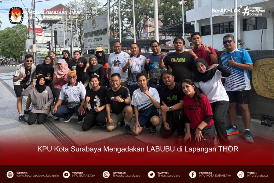 KPUSBY-Komisi Pemilihan Umum (KPU) Kota Surabaya kembali mengadakan kegiatan Lari Rabu Bareng KPU atau disebut dengan LABUBU pada Rabu, 1 Oktober 2025 di Lapangan THOR.
