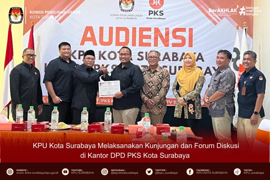 KPU MELAKSANAKAN KUNJUNGAN DAN FORUM DISKUSI KEPEMILUAN DI KANTOR DPD PARTAI KEADILAN SEJAHTERA (PKS) KOTA SURABAYA