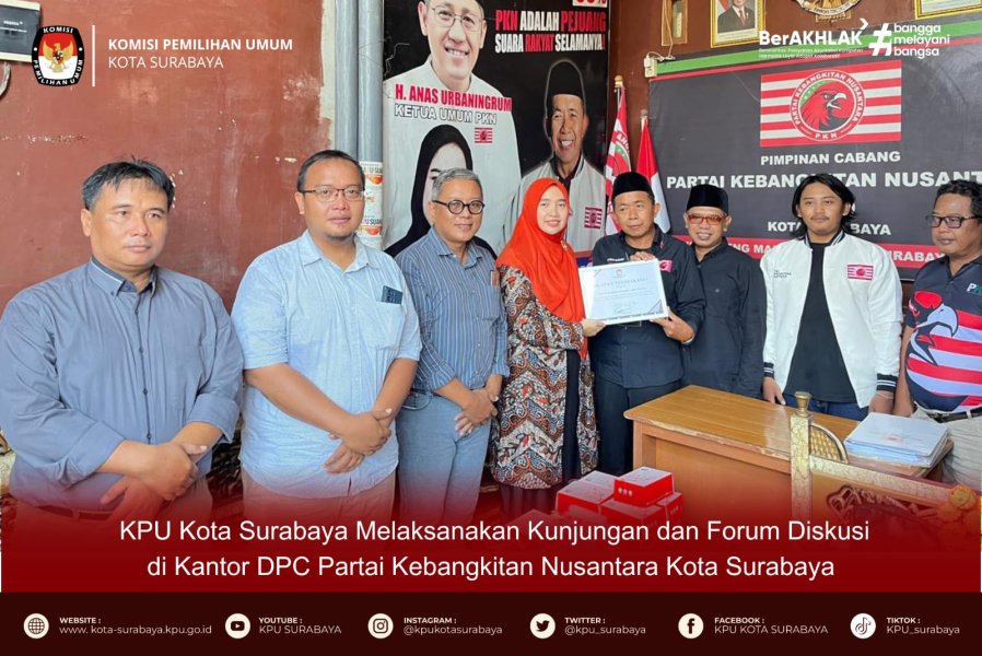 KPU KOTA SURABAYA MELAKSANAKAN KUNJUNGAN DAN FORUM DISKUSI KEPEMILUAN DI KANTOR DPC PARTAI KEBANGKITAN NUSANTARA KOTA SURABAYA
