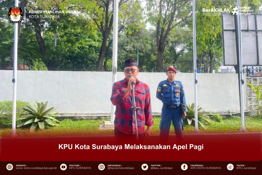 Bertindak sebagai Pembina Apel Ketua KPU Kota Surabaya, Soeprayitno. Dalam amanatnya beliau mengingatkan untuk segera menyelesaikan pekerjaan di tahun 2025 agar tidak menjadi tanggungan di tahun 2026, selain itu ia juga menghimbau untuk selalu menjaga kesehatan ditengah cuaca yang tidak menentu.