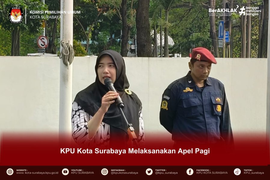 Komisi Pemilihan Umum (KPU) Kota Surabaya melaksanakan Apel Pagi rutin pada Senin, 19 Januari 2026 yang dilaksanakan di halaman Kantor.