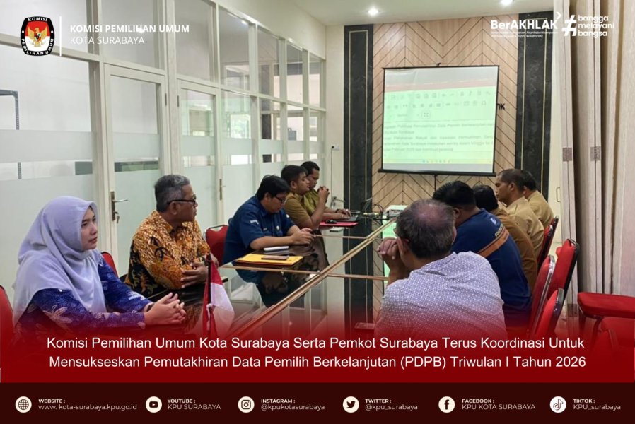KPUSBY-Komisi Pemilihan Umum Kota Surabaya serta Pemkot Surabaya terus koordinasi untuk mensukseskan Pemutakhiran Data Pemilih Berkelanjutan (PDPB) triwulan I Tahun 2026.