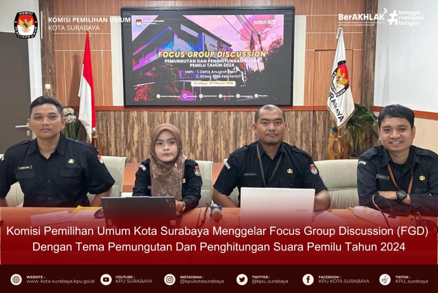 KPUSBY-Komisi Pemilihan Umum Kota Surabaya menggelar Focus Group Discussion (FGD) bertema Pemungutan Dan Penghitungan Suara Pemilu Tahun 2024” di lantai 2 Kantor KPU Kota Surabaya, Rabu, 25 Februari 2026