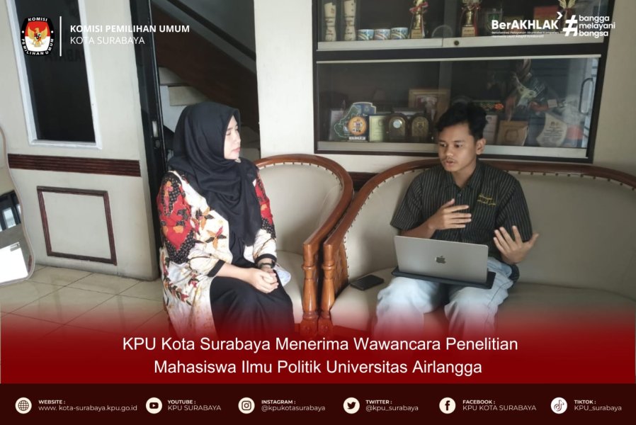 KOMISI PEMILIHAN UMUM KOTA SURABAYA MENERIMA KUNJUNGAN WAWANCARA PENELITIAN MAHASISWA ILMU POLITIK UNIVERSITAS AIRLANGGA