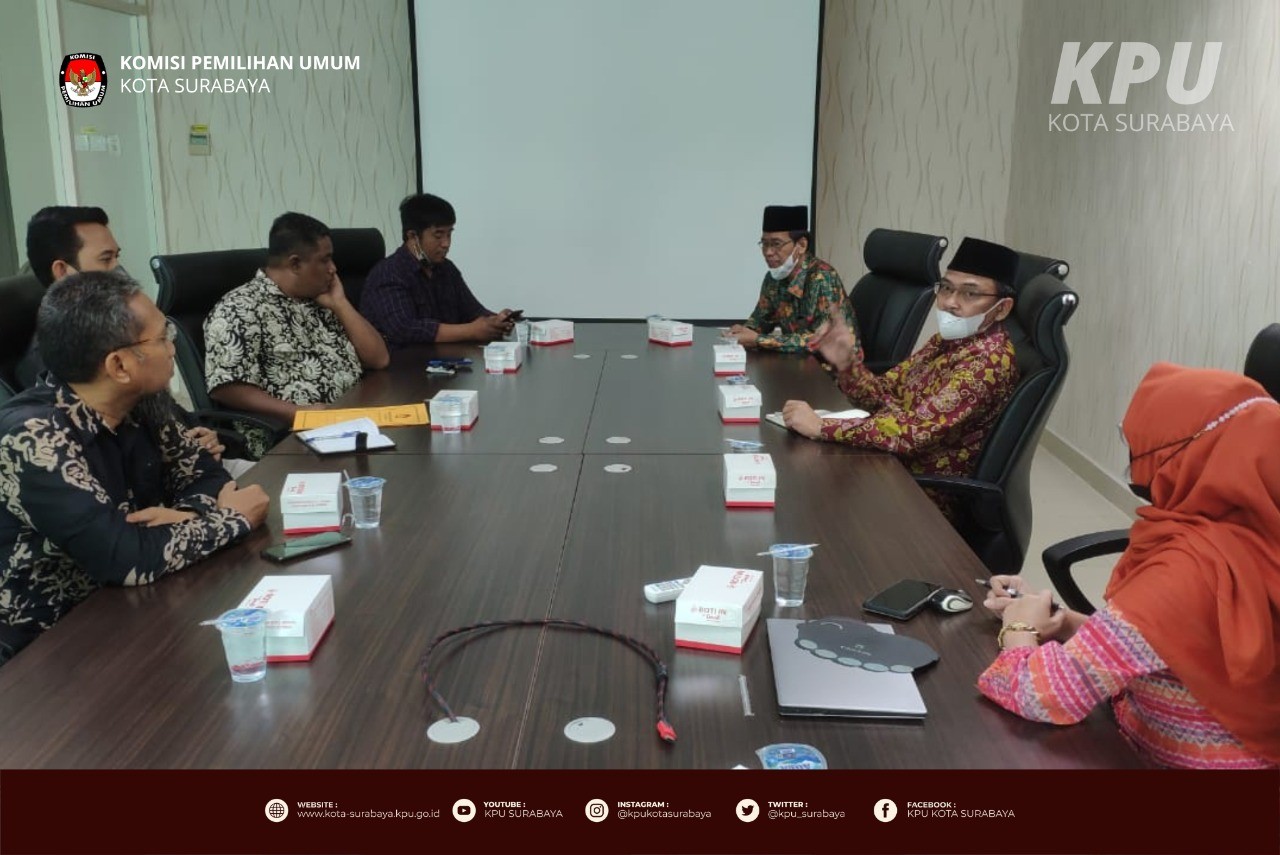 Surabaya, kota-surabaya.kpu.go.id – Rabu pagi (15/6), KPU Surabaya melaksanakan audiensi dengan Universitas Islam Negeri Sunan Ampel Surabaya (UINSA). Bertempat di Ruang Rapat Rektor Gedung Twin Towers UINSA, Muhid (Wakil Rektor III), Mamat Salamet Burhanuddin (Kepala Biro AAKK), Suhermanto Dja’far (Wakil Dekan I Fakultas Ushuluddin dan Filsafat), Slamet Mulyono (Wakil Dekan III Fakultas Ushuluddin dan Filsafat), Emy Tyartiani (Koordinator Kerjasama Kelembagaan & Humas), dan M. Amin, S.Ag Lubis (Sub Koordinator Kerjasama Kelembagaan dan Humas) menerima kunjungan KPU Surabaya.