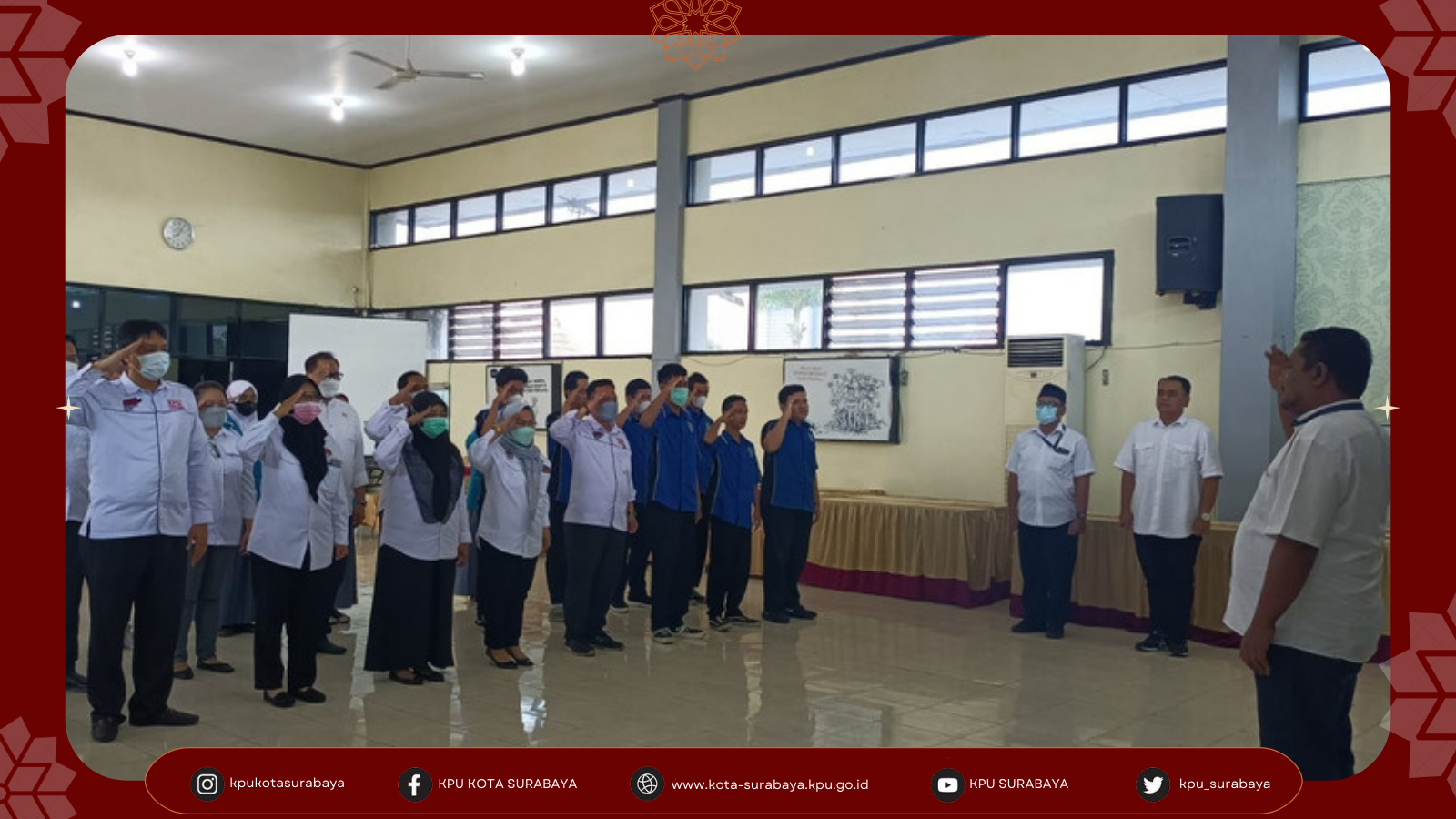 Surabaya, kota-surabaya.kpu.go.id – Senin pagi (28/03/2022), KPU Surabaya menyelenggarakan apel di ruangan tertutup yang berada di Graha Sawunggaling, lantai 3, kantor KPU Surabaya. Apel yang dilaksanakan tepat pukul 8 pagi ini diikuti oleh jajaran Pimpinan dan Staf. Kegiatan yang rutin dilaksanakan setiap Senin pagi ini sekaligus menjadi momen untuk berkoordinasi secara kesuluruhan mulai level Pimpinan sampai Staf.
