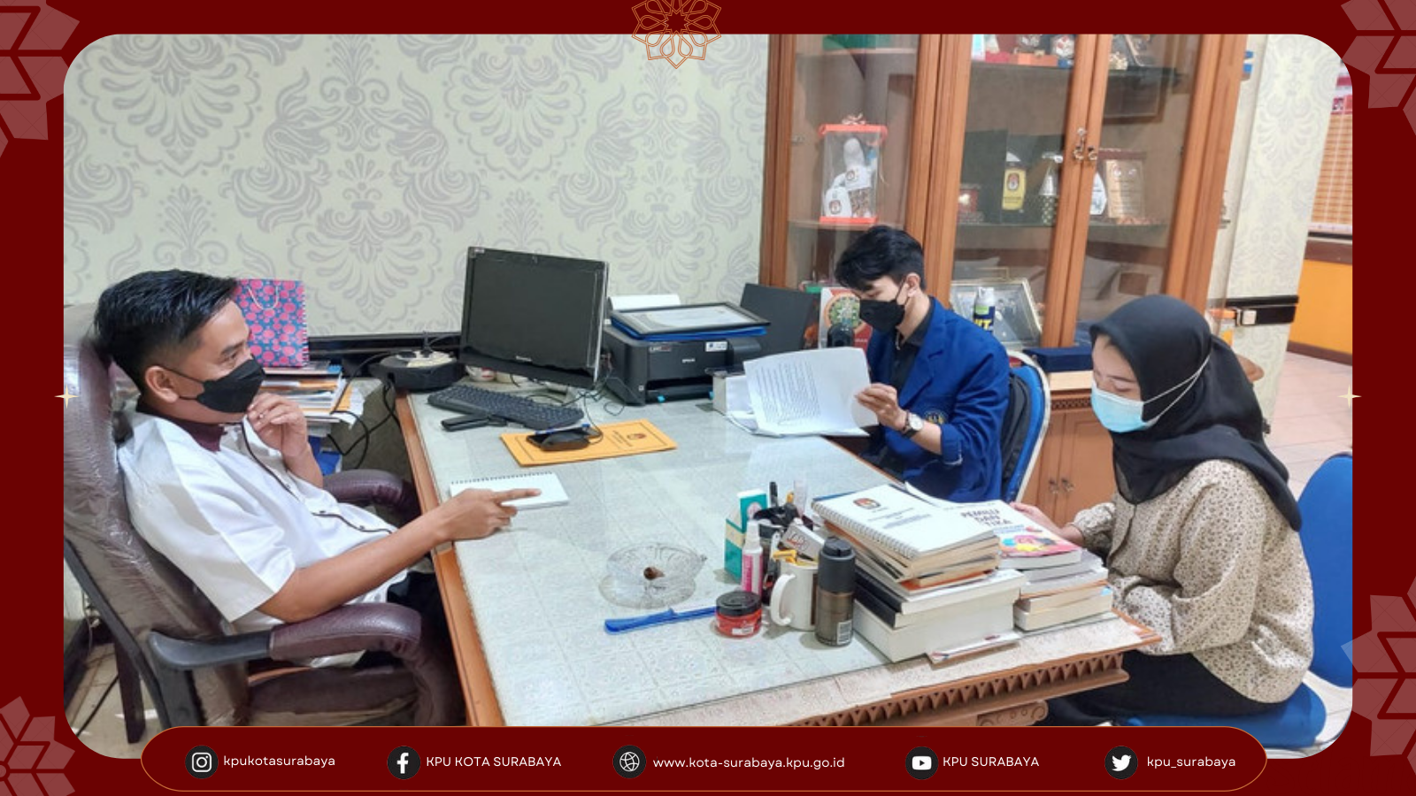 Surabaya, kota-surabaya.kpu.go.id – Senin sore (4/4), KPU Surabaya melayani permohonan wawancara dan informasi dari mahasiswa Universitas Negeri Yogyakarta (UNY). Mahasiswa bernama Ahmad Dafa Maulana ini sedang menyusun tugas akhir yang berjudul Strategi Pendidikan Politik KPU Surabaya kepada Pemilih dalam Pemilihan 2020 di Masa Pandemi COVID-19.