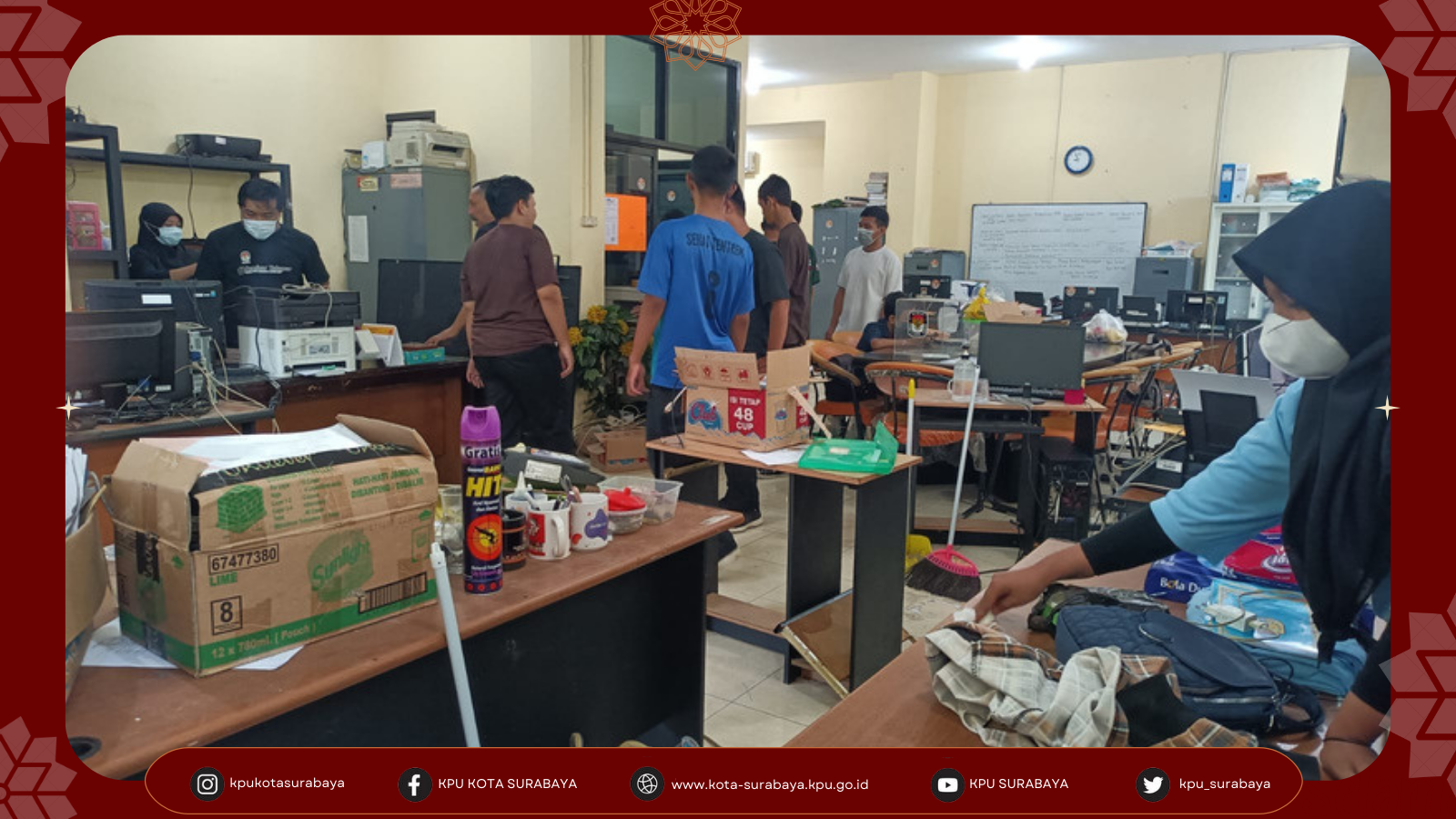 Surabaya, kota-surabaya.kpu.go.id – Jumat pagi (25/03/2022), KPU Surabaya menyelenggarakan kerja bakti untuk menata ruang kerja kantor yang terletak di lantai 2. Seluruh jajaran KPU Surabaya bersama mahasiswa dan siswa magang merapikan meja dan kursi kerja dengan memperhatikan kedekatan Sumber Daya Manusia antara Kasubbag dan Staf berbasis Subbagian.