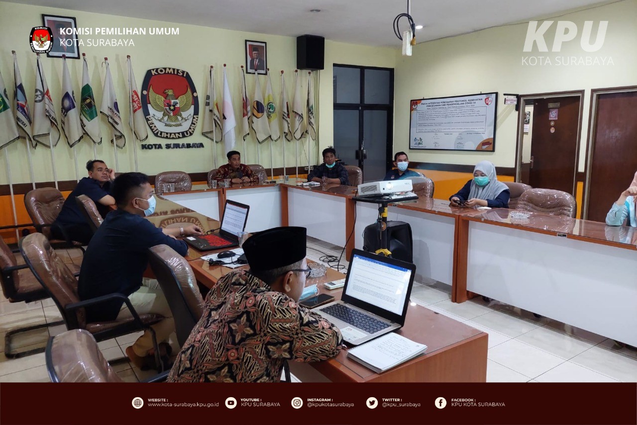 Ketua dan seluruh Anggota KPU Surabaya yang menjadi peserta kajian itu melakukan diskusi secara rinci mengenai tugas KPU Kabupaten/Kota dalam tahapan pendaftaran dan verifikasidari satu pasal ke pasal berikutnya.
