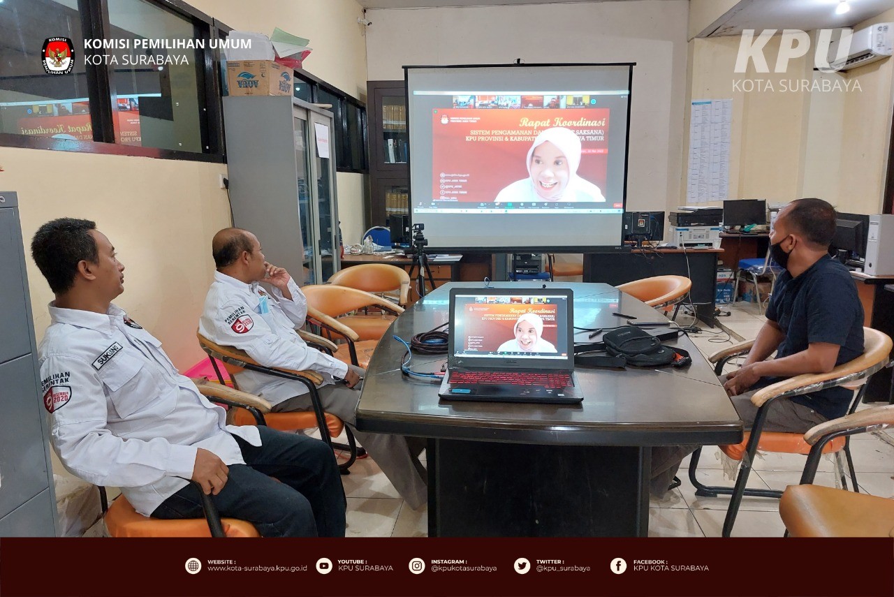 Surabaya, kota-surabaya.kpu.go.id – Senin pagi (30/5), KPU Surabaya mengikuti Rapat Konsolidasi Pengamanan Dalam Tahun 2022 pada Sekretariat KPU Provinsi dan KPU Kabupaten/Kota se-Jawa Timur yang diselenggarakan oleh KPU Jawa Timur. Kegiatan yang dilaksanakan secara daring ini turut dihadiri oleh Sekretaris, Kepala Subbagian Keuangan, Umum, dan Logistik, serta Anggota Pengamanan KPU Kabupaten/Kota se-Jawa Timur.