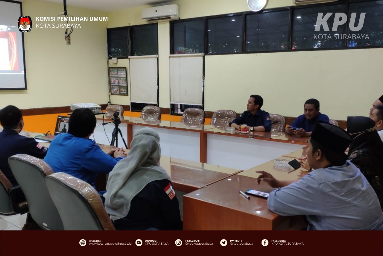 Surabaya, kota-surabaya.kpu.go.id – Selasa sore (12/4), KPU Surabaya menyaksikan kegiatan Serah Terima Jabatan Anggota KPU RI Periode 2017-2022 dan Periode 2022-2027 secara daring oleh KPU RI. Kegiatan yang digelar melalui Live Streaming Kanal Youtube KPU RI ini turut disaksikan oleh seluruh KPU Provinsi dan KPU Kabupaten/Kota se-Indonesia.