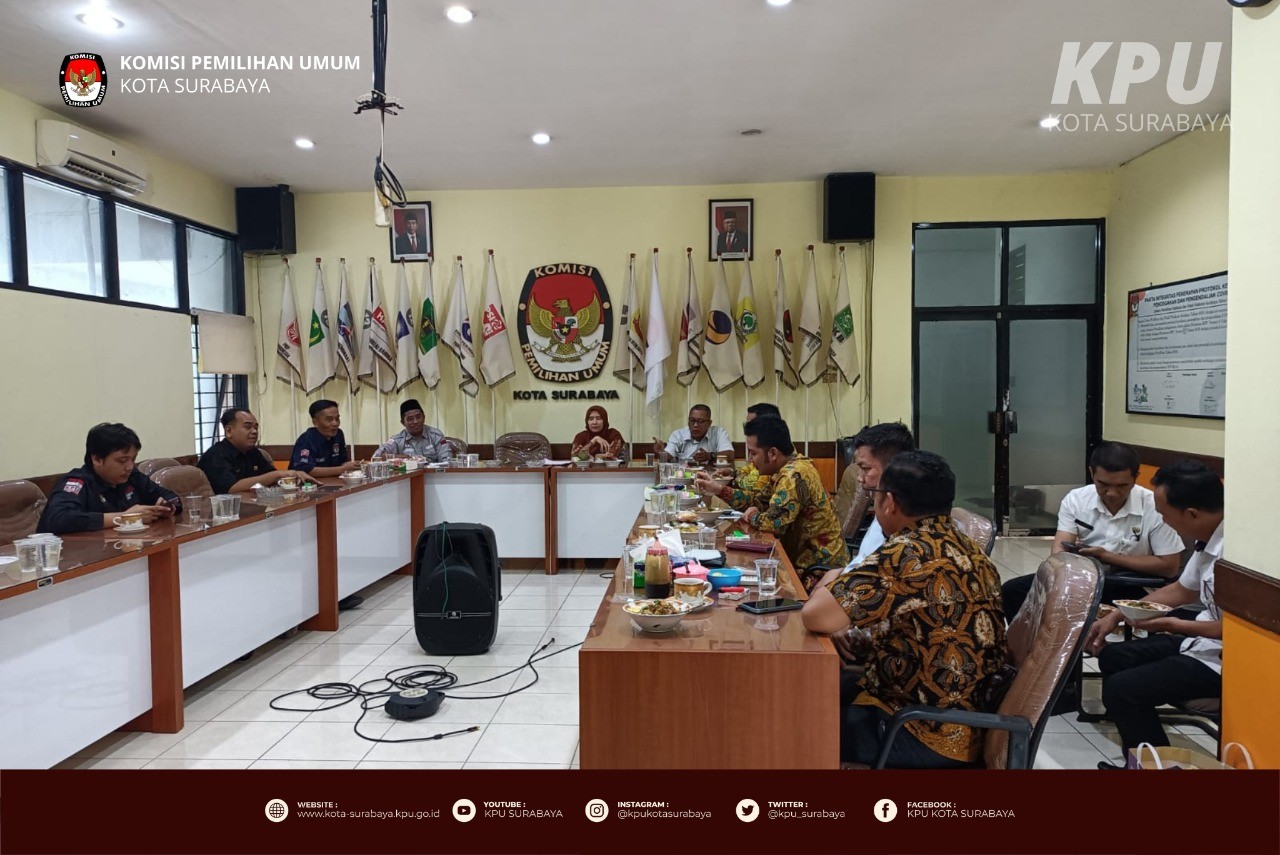 Surabaya, kota-surabaya.kpu.go.id – Rabu pagi (18/5), KPU Surabaya menerima kunjungan kerja DPRD Kabupaten Kotabaru, Kalimantan Selatan. Kunjungan yang bertujuan untuk memperoleh informasi bagi percepatan pembangunan daerah ini dihadiri oleh Komisi I yang terdiri dari 10 anggota serta diterima oleh Ketua bersama seluruh Anggota, Sekretaris, dan Kasubbag KPU Surabaya.