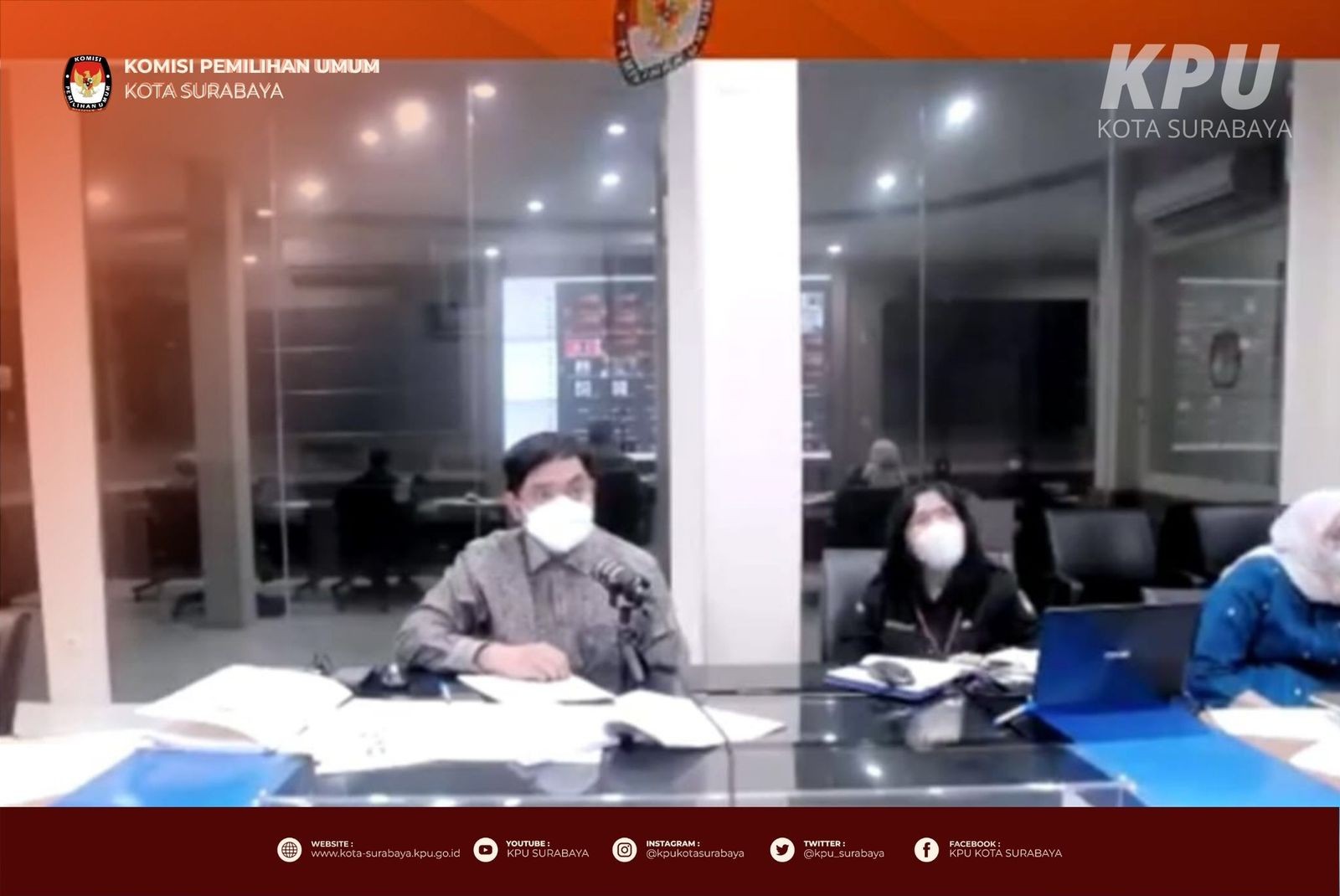 Surabaya, kota-surabaya.kpu.go.id – Rabu siang (6/4), KPU Surabaya mengikuti Uji Publik Rancangan Peraturan KPU tentang Pemutakhiran Data Pemilih dan Penyusunan Daftar Pemilih dalam Penyelenggaraan Pemilu yang diselenggarakan secara daring oleh KPU RI. Kegiatan yang digelar melalui live streaming di kanal Youtube KPU RI ini turut melibatkan Bawaslu RI, DKPP RI, Partai Politik tingkat pusat, hingga organisasi pegiat Pemilu.