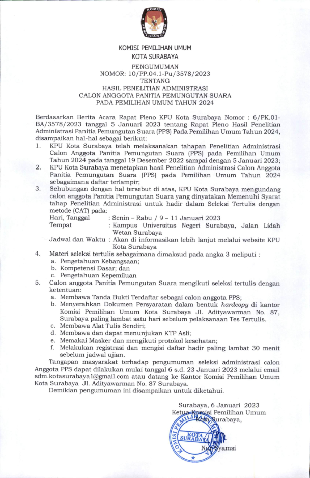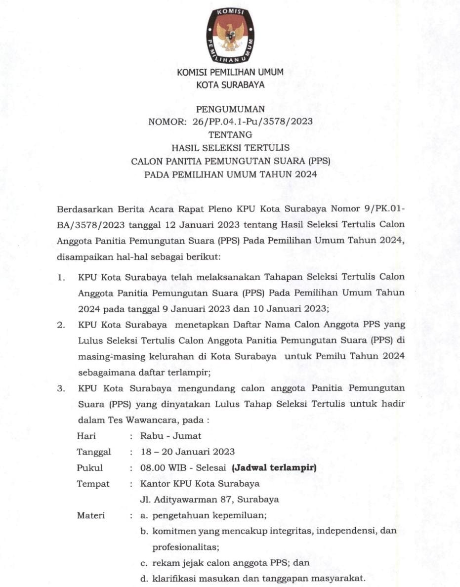 Anggota KPU Surabaya, Subairi dalam pengarahannya menyampaikan bahwa rapat koordinasi ini penting untuk kelancaran pembentukan PPS yang saat ini berada di tahap wawancara yang akan dilaksanakan selama 3 hari mulai 18 Januari 2023.