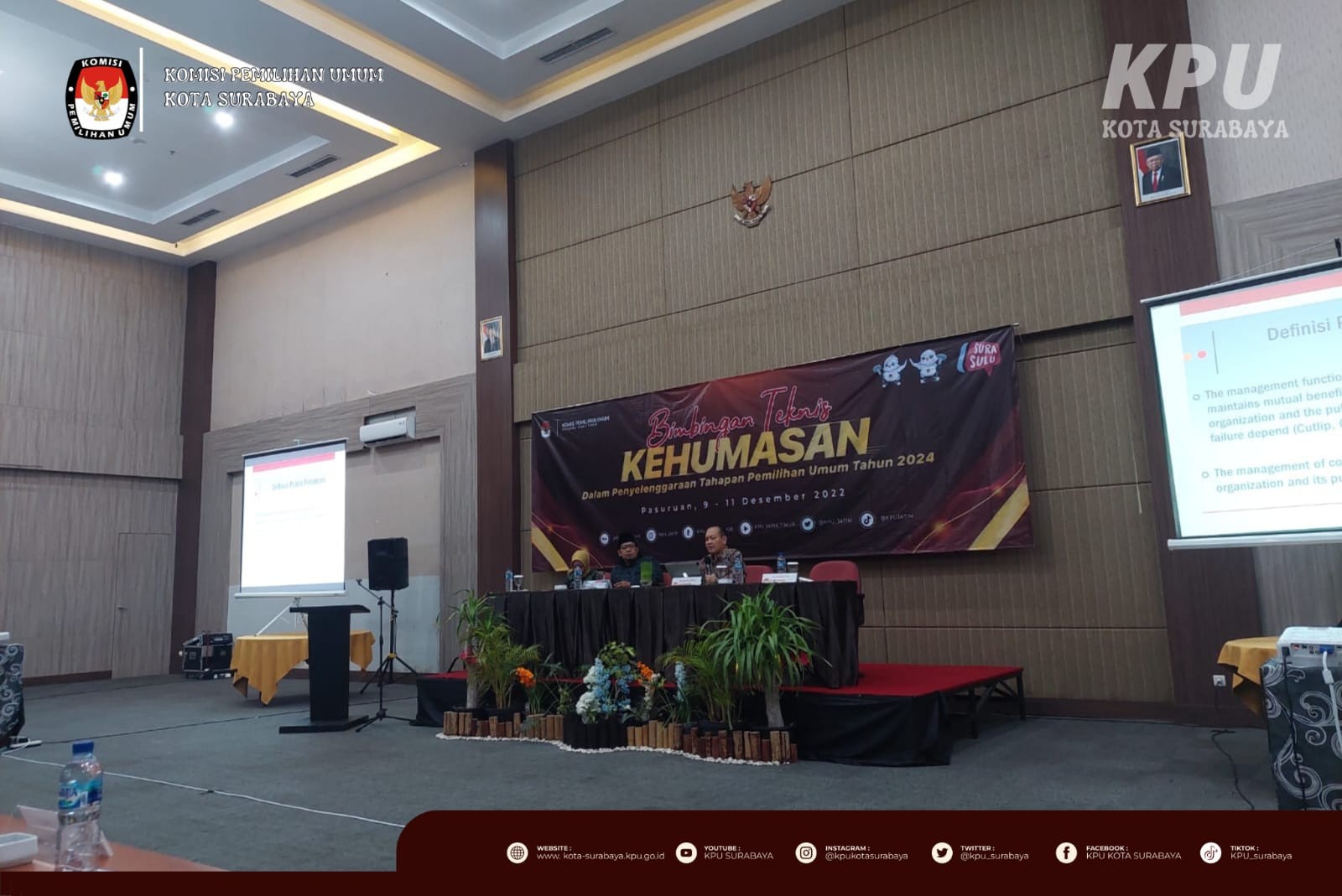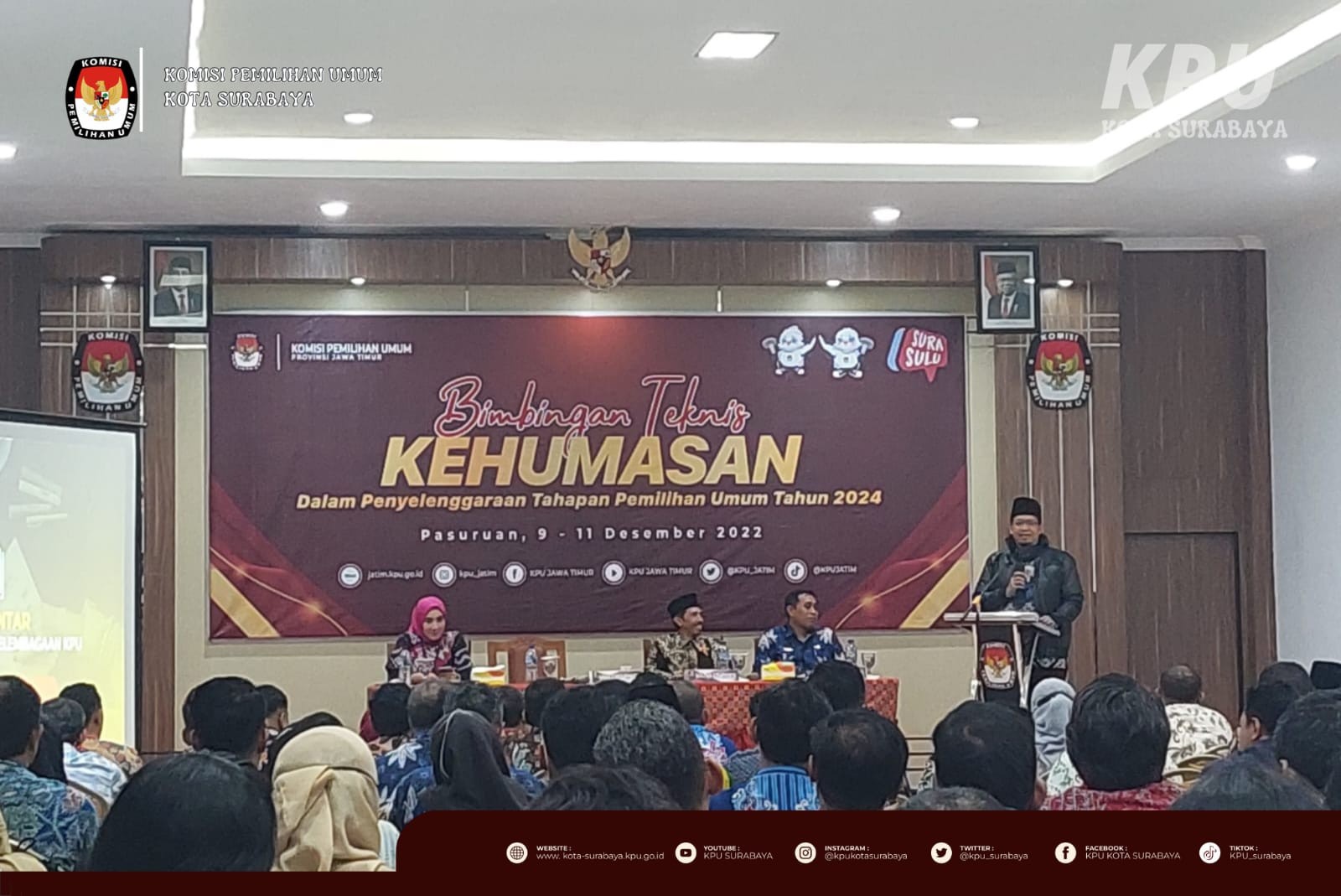 Pasuruan, kota-surabaya.kpu.go.id – Jumat (9/12), Wadek III Fisip Universitas Brawijaya, Dr. Bambang Dwi Prasetyo berkesempatan menjadi pembicara dalam Bimtek Kehumasan dalam Penyelenggaraan Tahapan Pemilu 2024. Dalam pembahasannya, Ia menyampaikan bahwa komunikasi adalah bagaimana memahami publik.