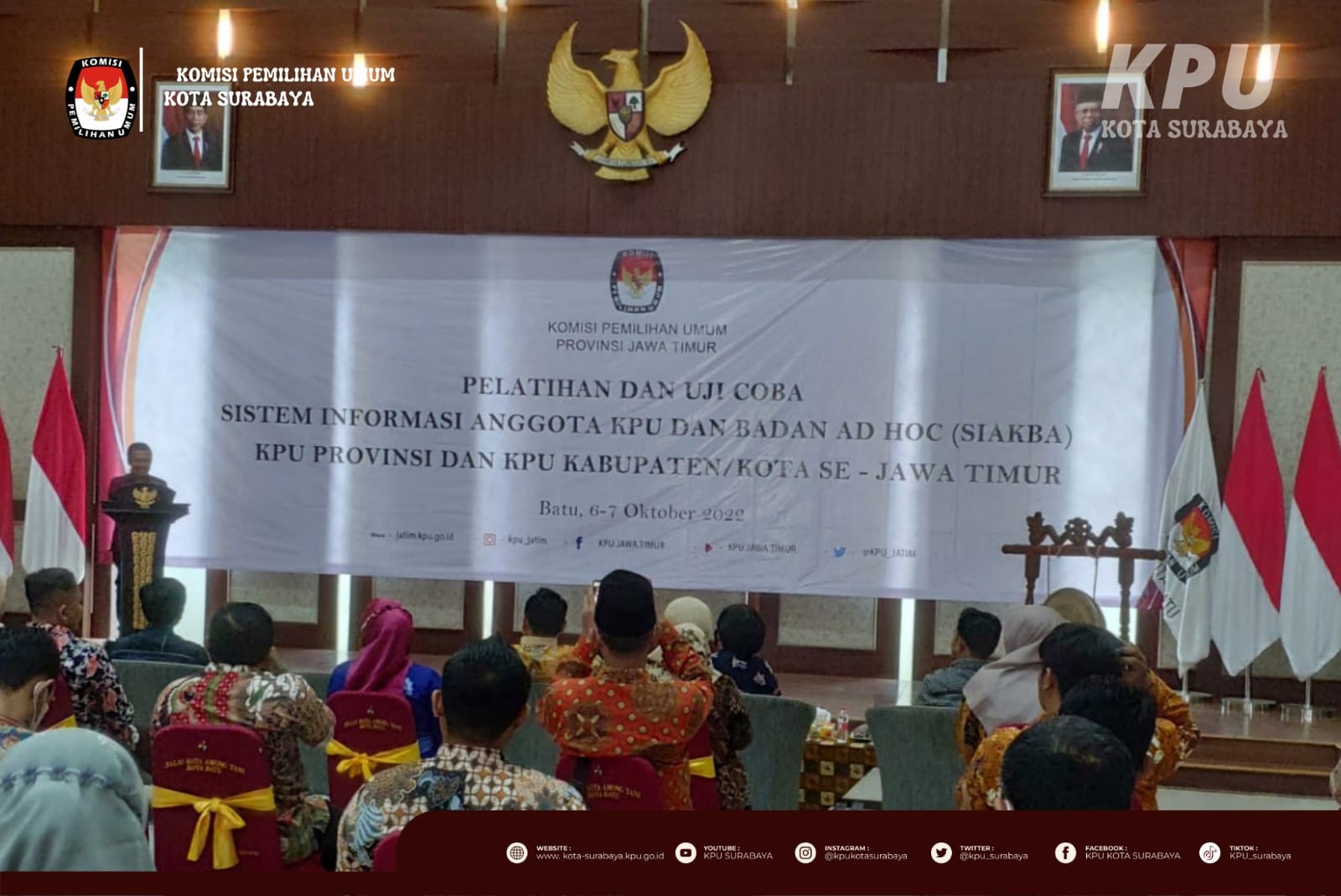 Batu, kota-surabaya.kpu.go.id - Kamis (6/10), KPU Surabaya mengikuti Pelatihan Uji Coba Sistem Informasi Anggota KPU dan Badan Adhoc (SIAKBA) yang diselenggarakan oleh KPU Jawa Timur. Pelatihan yang diadakan selama 2 hari di Graha Pancasila Balai Kota Among Tani, Kota Batu ini dihadiri oleh Ketua Divisi Sosdiklih, Parmas dan SDM, Kepala Subbagian Hukum dan SDM serta Calon Operator KPU Kabupaten/Kota se-Jawa Timur. Dalam Pelatihan yang dibuka secara simbolis melalui pemukulan gong oleh Ketua KPU Jawa Timur ini turut disaksikan oleh Wakil Walikota Batu.