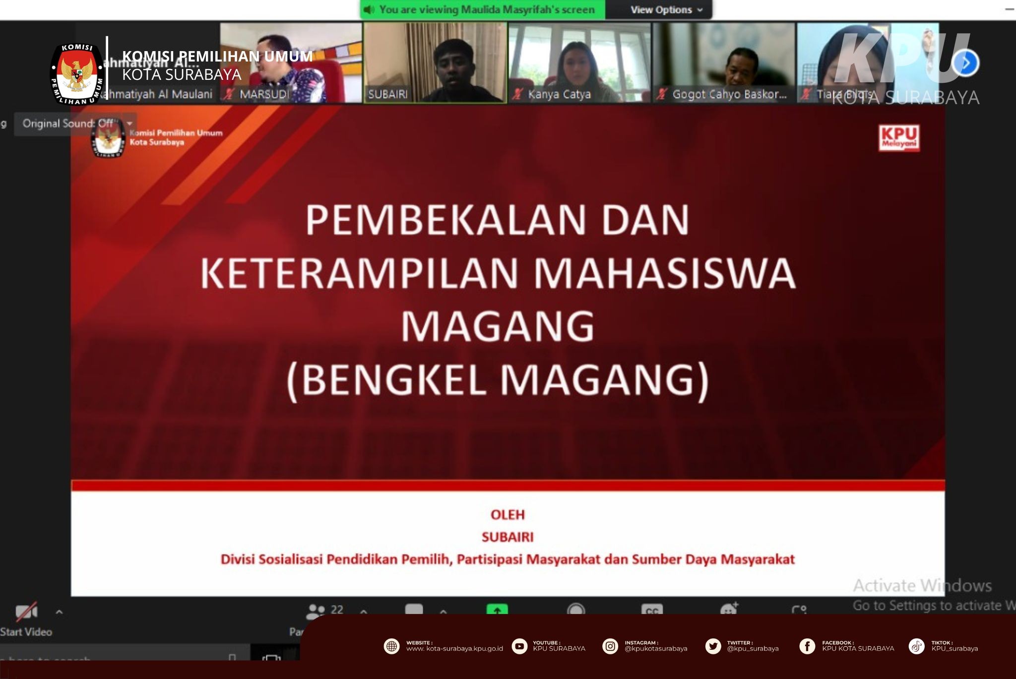 Surabaya, kota-surabaya.kpu.go.id — Kamis (8/9), Komisioner KPU Kota Surabaya Divisi Sosialisasi, Pendidikan Pemilih, Partisipasi Masyarakat, dan Sumber Daya Manusia, Subairi, hadiri Rapat Koordinasi Program MBKM Studi Independen Mahasiswa DKV Unesa. Rapat yang dilaksanakan secara daring melalui Zoom Meeting ini dihadiri oleh anggota Komisioner KPU Jatim, anggota Komisioner KPU Surabaya, Ketua Jurusan DKV Unesa, dosen serta mahasiswa DKV Unesa.