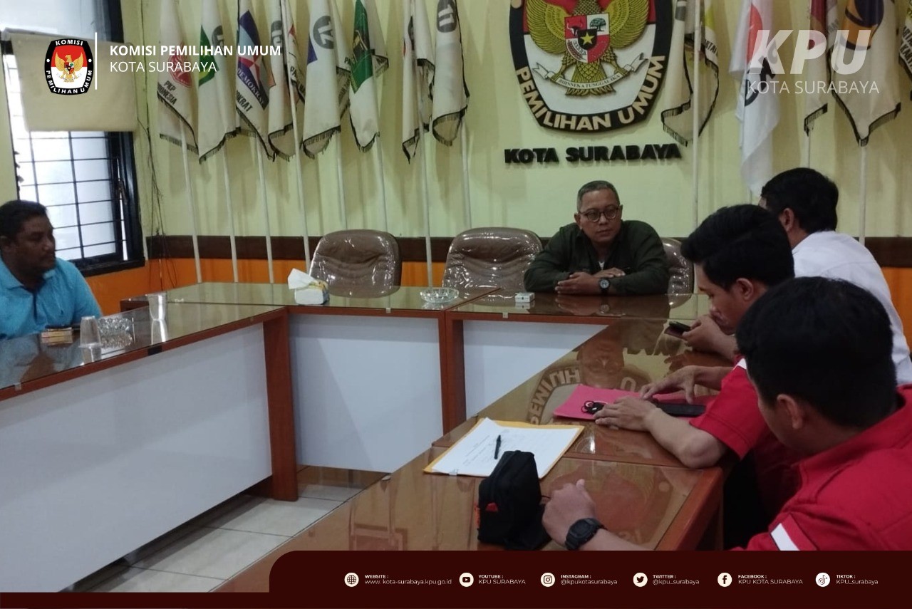 Surabaya, kota-surabaya.kpu.go.id - Kamis siang (25/8), Partai Gerakan Indonesia Raya (Gerindra) Surabaya dan Partai Kebangkitan Bangsa (PKB) Surabaya mendatangi Helpdesk KPU Surabaya. Sayuli, perwakilan Partai Gerindra bersama Isa Anshori, perwakilan dari PKB menanyakan mengenai mekanisme pendaftaran dan verifikasi administrasi Partai Politik Pemilu 2024, serta memastikan kesesuaian data di Sistem Informasi Partai Politik (Sipol).