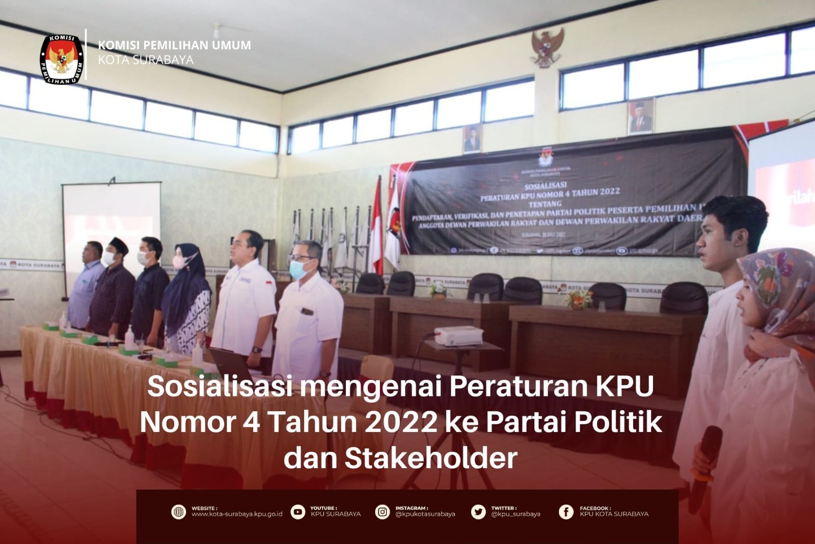 Anggota KPU Surabaya, Ketua Divisi Teknis Penyelenggaraan, Soeprayitno menyampaikan bahwa terdapat kategori Partai Politik yang dapat menjadi calon peserta Pemilu, yaitu Partai Politik yang memenuhi ambang batas perolehan suara paling sedikit 4% dari perolehan suara sah secara nasional hasil Pemilu terakhir, Partai Politik yang tidak memenuhi ambang batas perolehan suara paling sedikit 4% dari perolehan suara sah secara nasional hasil Pemilu terakhir dan memiliki/tidak memiliki keterwakilan di tingkat DPRD provinsi dan DPRD kabupaten/kota, dan Partai Politik yang tidak menjadi peserta Pemilu dalam Pemilu terakhir.