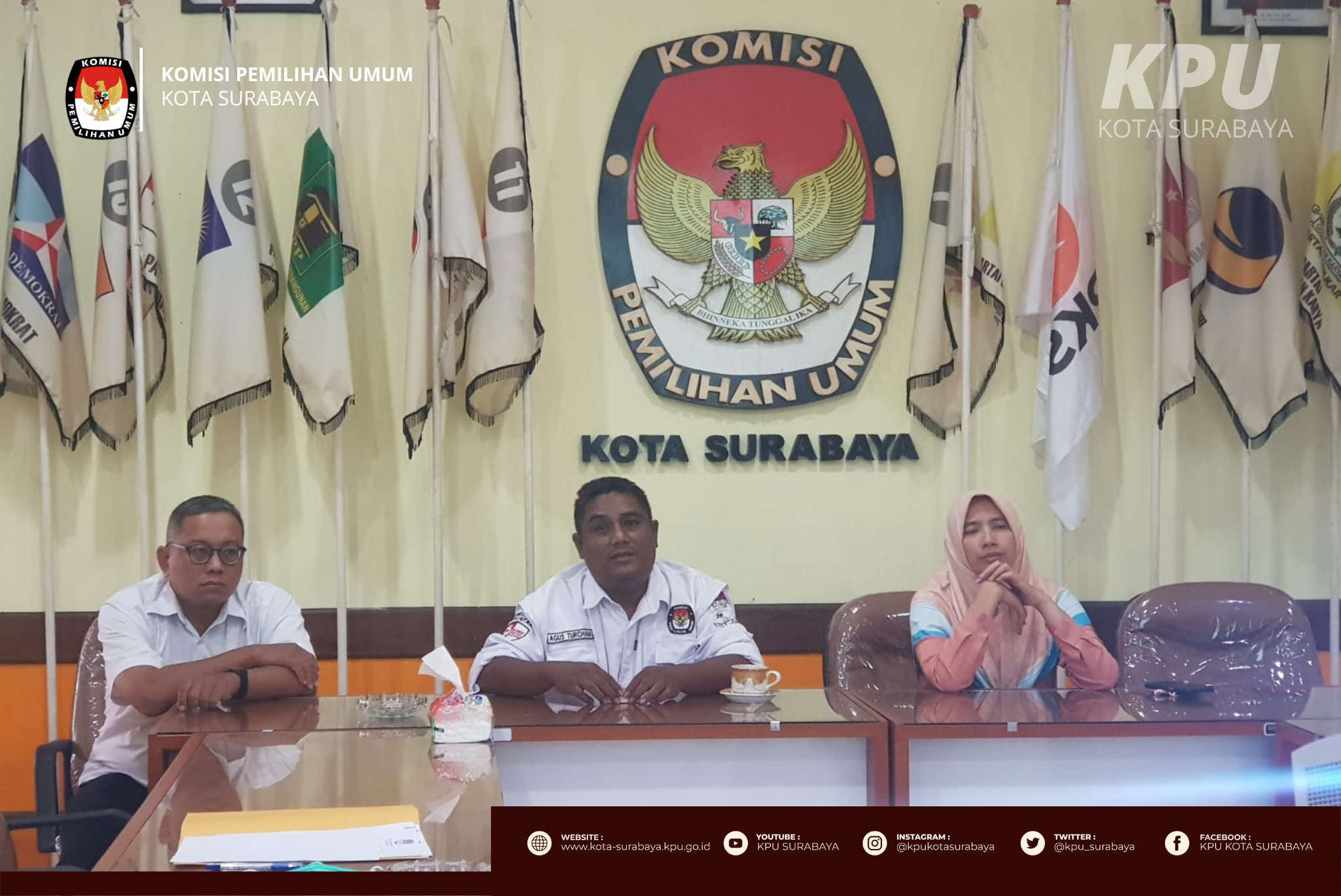 Surabaya, kota-surabaya.kpu.go.id – Kamis siang (28/7), KPU Surabaya menyelenggarakan Sosialisasi mengenai Peraturan KPU Nomor 4 Tahun 2022 tentang Pendaftaran, Verifikasi, dan Penetapan Partai Politik Peserta Pemilihan Umum Anggota Dewan Perwakilan Rakyat dan Dewan Perwakilan Rakyat Daerah. Kegiatan yang berlangsung selama 3 jam ini diikuti oleh Bawaslu Surabaya, Pemerintah Kota Surabaya, dan Partai Politik tingkat Kota Surabaya.