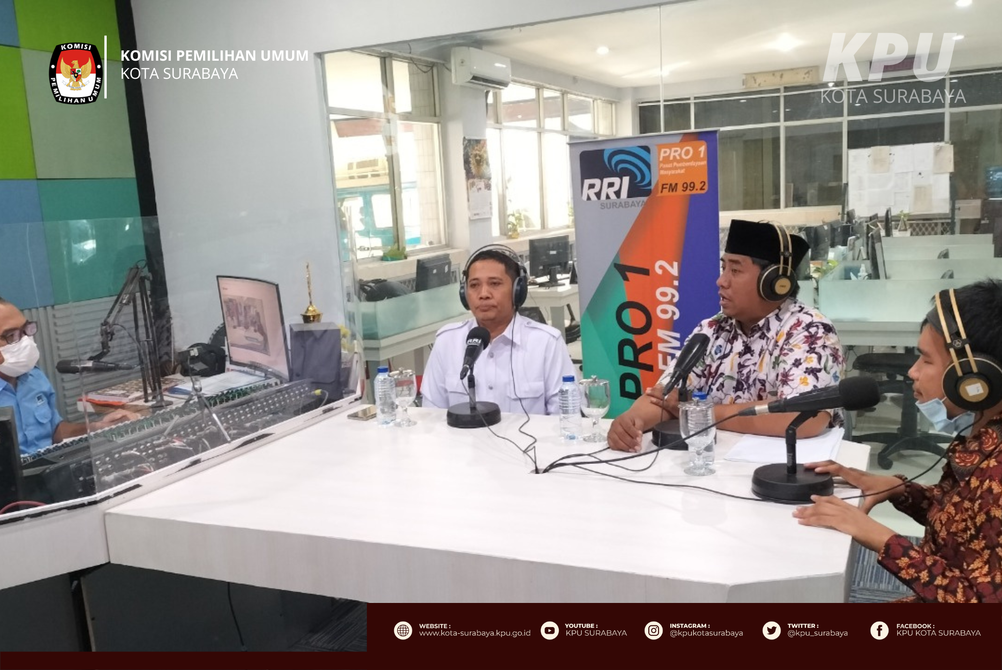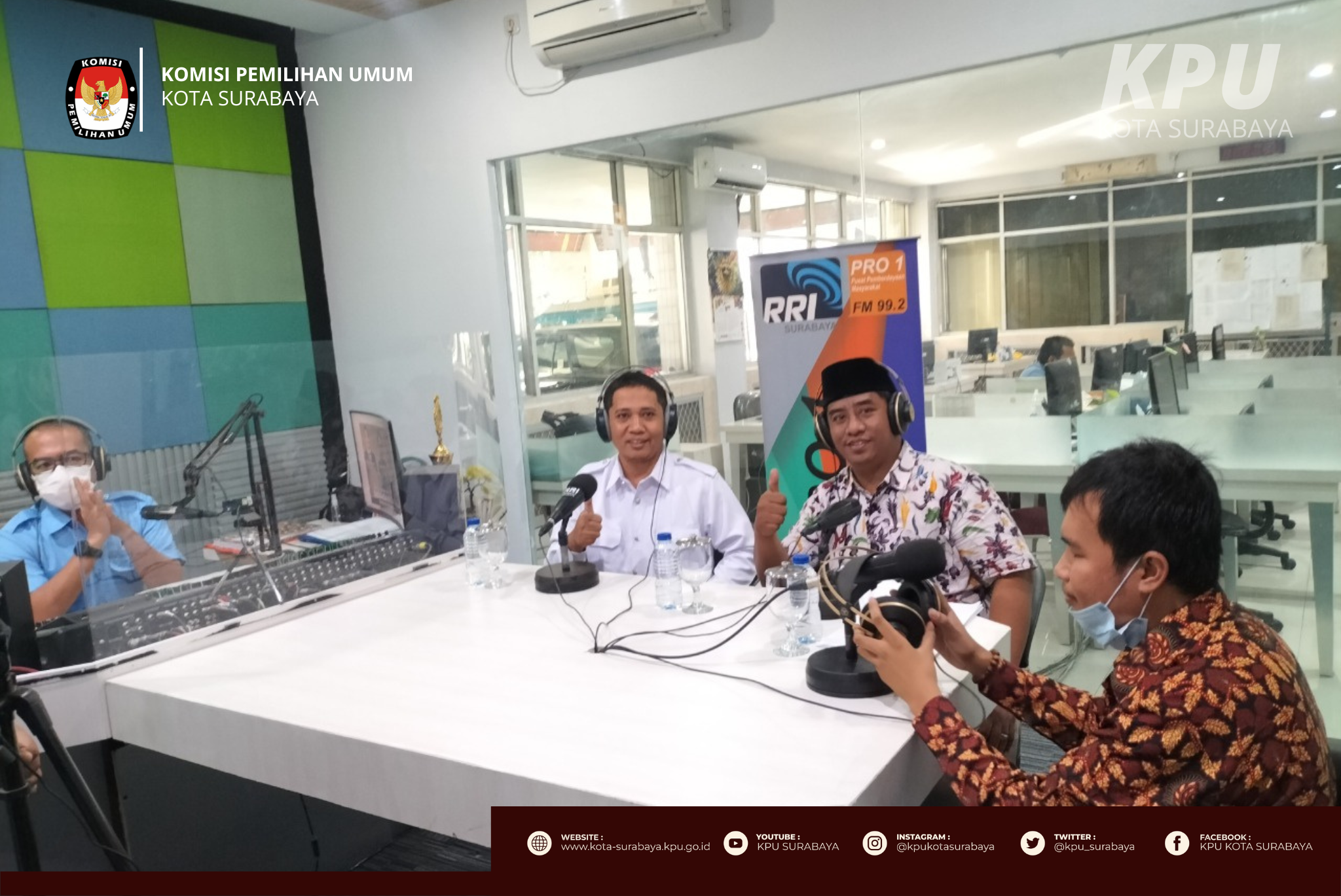 Surabaya, kota-surabaya.kpu.go.id – Rabu pagi (27/7), KPU Surabaya mengikuti Dialog Interaktif dengan topik "Pemilu Asik, Menyatukan Indonesia" di Radio Republik Indonesia (RRI) Surabaya bersama Fakultas Ilmu Sosial dan Ilmu Budaya (FISIB) Universitas Trunojoyo Madura dan DPD Pertuni Jawa Timur. Dekan FISIB Universitas Trunojoyo Madura, Surokim Abdus Salam menyampaikan bahwa dalam mewujudkan Pemilu yang asik dipengaruhi berbagai faktor, baik mikro dan makro, mulai penyelenggara Pemilu, peserta Pemilu, dan sarana teknologi. "Penyelenggara sungguh-sungguh dalam melaksanakan Pemilu, dan Pimpinan Partai Politik memberikan contoh dan teladan bagi masyarakat, serta pemilih yang cerdas, sehingga Pemilu yang asik dapat terwujud," harap Surokim Abdus Salam. Dalam kegiatan yang disiarkan secara langsung di radio dan youtube ini, Subairi (Anggota KPU Surabaya, Ketua Divisi Sosialisasi Pendidikan Pemilih, Partisipasi Masyarakat, dan Sumber Daya Manusia) menyampaikan bahwa Pemilu tidak hanya tanggung jawab penyelenggara, tapi tanggung jawab bersama seluruh elemen, sehingga Pemilu harus kita kawal bersama karena Pemilu menjadi sarana memilih pemimpin oleh masyarakat.