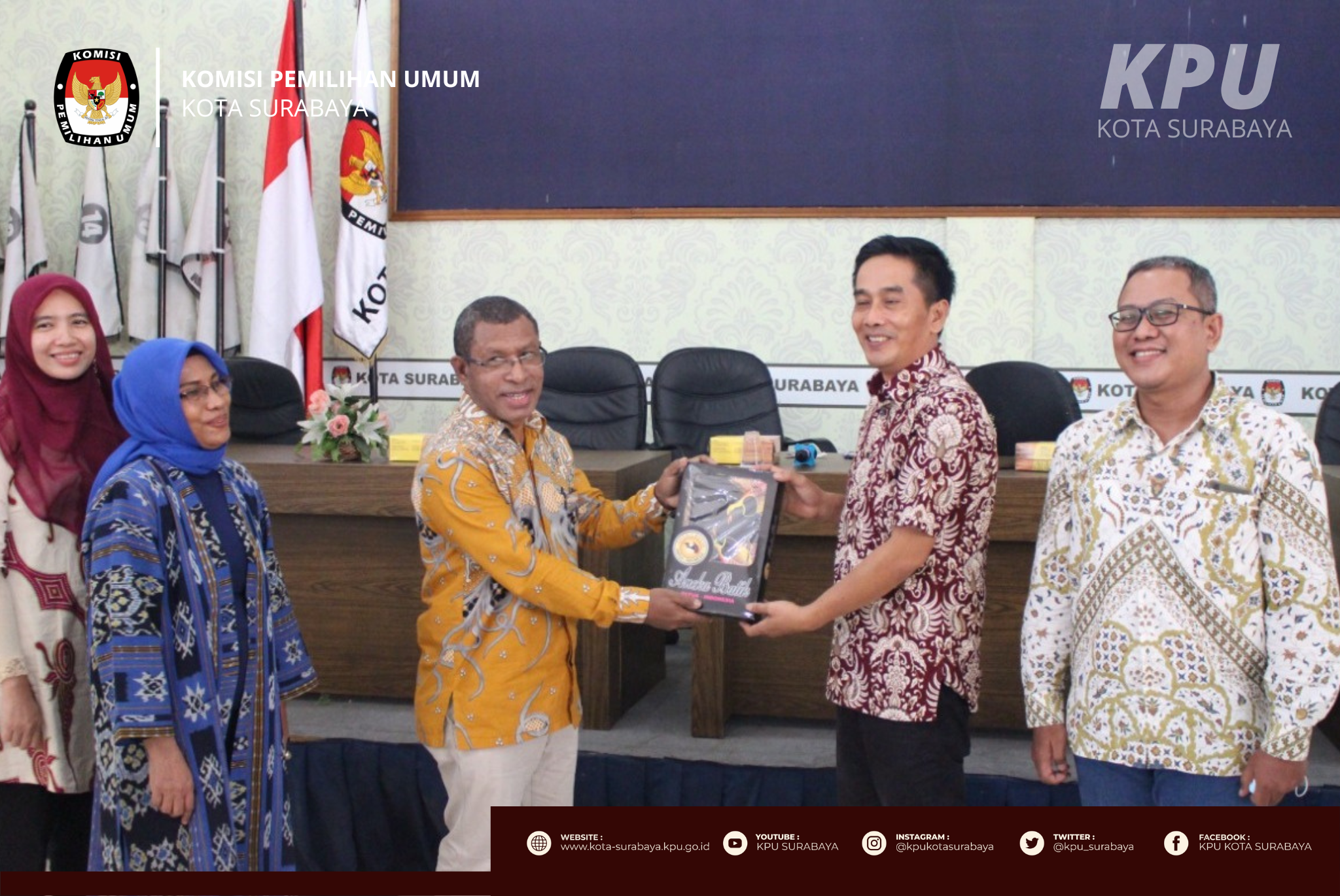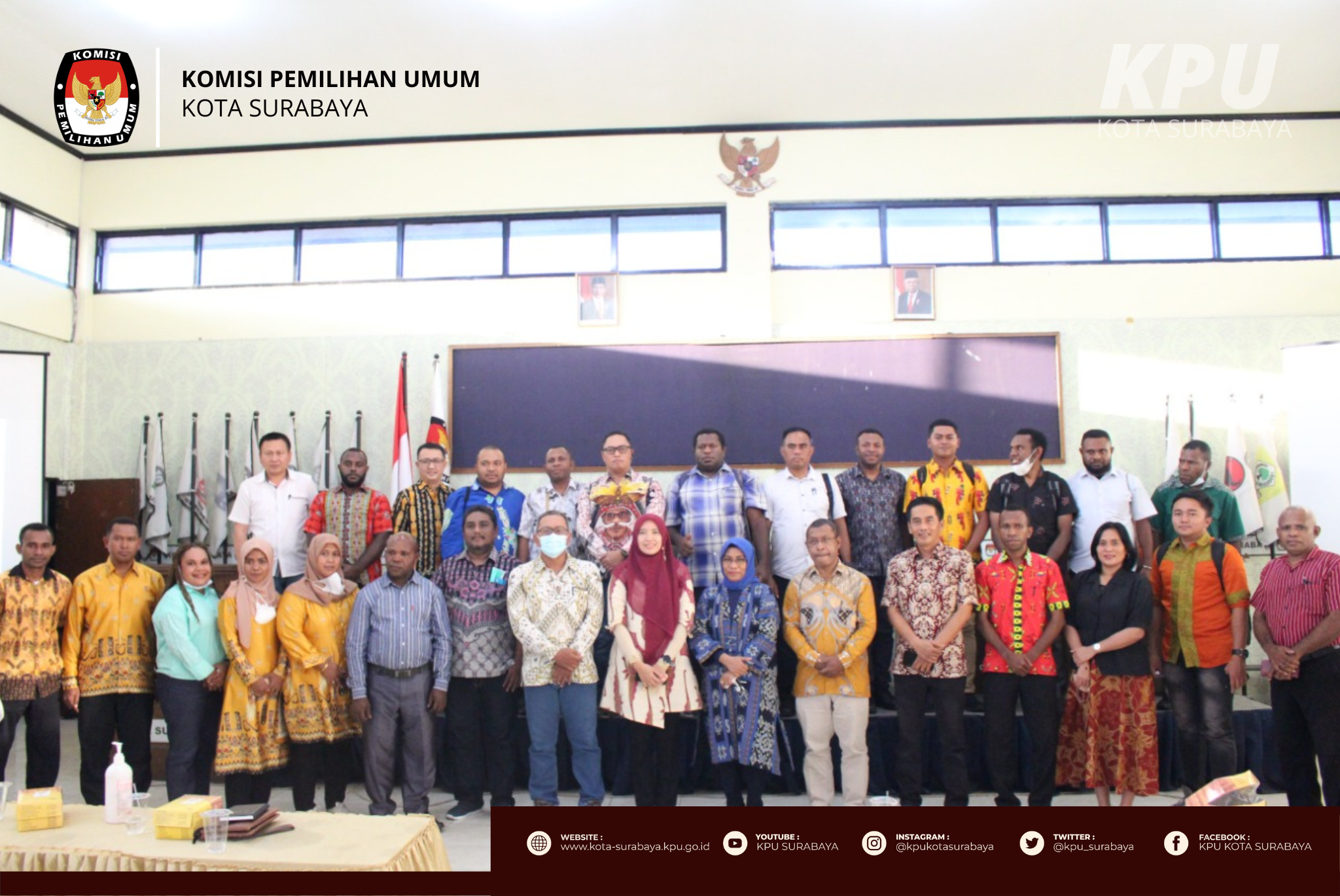 Surabaya, kota-surabaya.kpu.go.id – Rabu sore (20/7), KPU Surabaya menerima kunjungan studi dari Universitas Cenderawasih di Grha Swara KPU Surabaya. Kunjungan maraton yang diawali dari Universitas Airlangga dan Dewan Perwakilan Rakyat Daerah (DPRD) Surabaya ini diikuti oleh pimpinan, dosen, dan puluhan mahasiswa Universitas Cenderawasih.