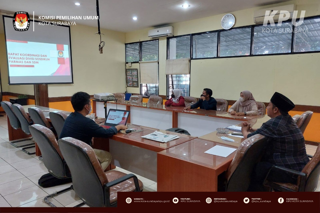 Surabaya, kota-surabaya.kpu.go.id – Selasa Siang (5/7), KPU Surabaya menyelenggarakan Rapat Koordinasi dan Evaluasi Kegiatan Sosialisasi dan Pendidikan Pemilih di kantor KPU Surabaya. Kegiatan yang bertempat di kantor KPU Surabaya ini dipimpin oleh Ketua Divisi Sosialisasi, Pendidikan Pemilih, Partisipasi Masyarakat, dan Sumber Daya Manusia, serta diikuti oleh Kepala Subbagian Teknis Penyelenggaraan Pemilih, Partisipasi dan Hubungan Masyarakat bersama staf dan peserta magang.