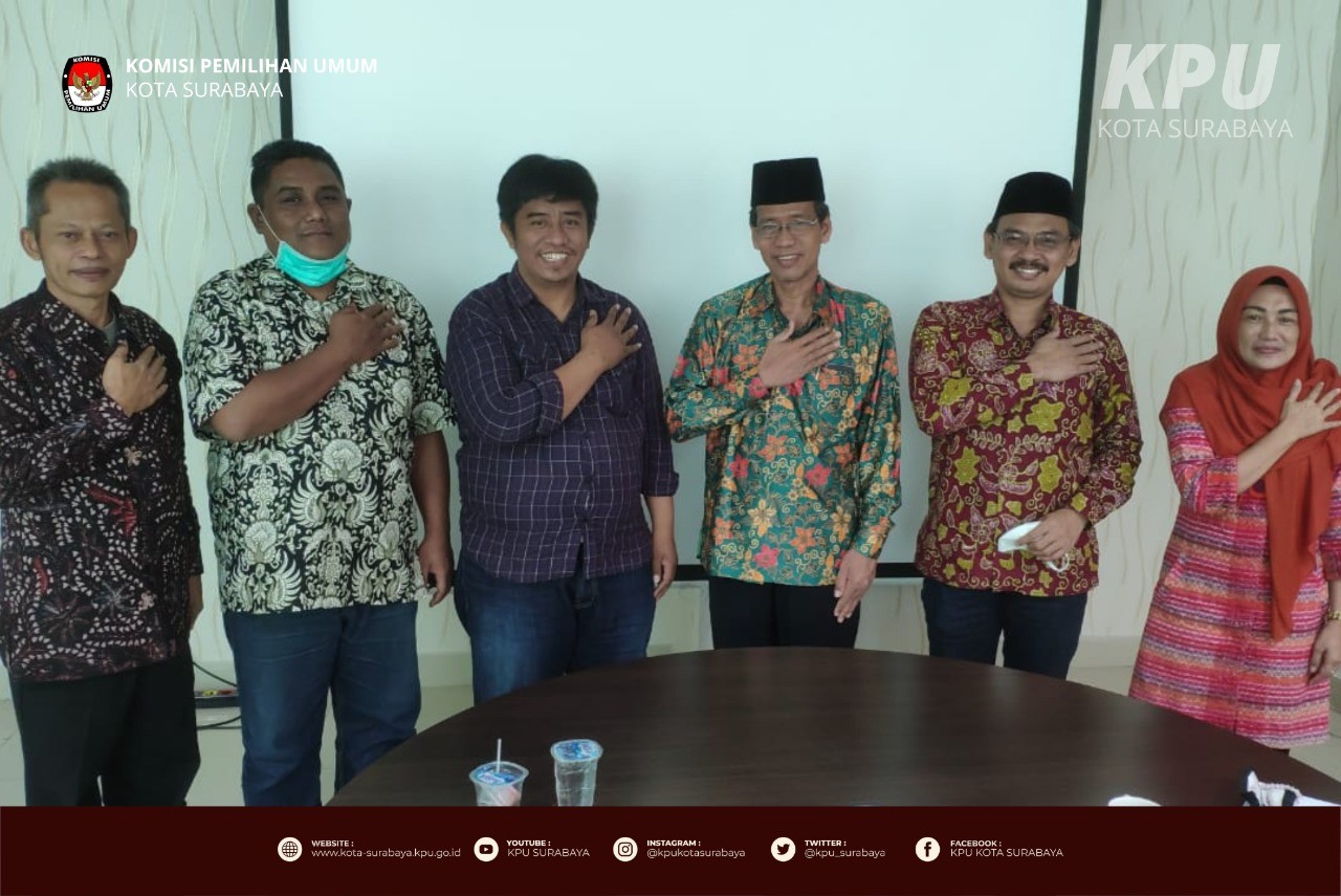 Surabaya, kota-surabaya.kpu.go.id – Rabu pagi (15/6), KPU Surabaya melaksanakan audiensi dengan Universitas Islam Negeri Sunan Ampel Surabaya (UINSA). Bertempat di Ruang Rapat Rektor Gedung Twin Towers UINSA, Muhid (Wakil Rektor III), Mamat Salamet Burhanuddin (Kepala Biro AAKK), Suhermanto Dja’far (Wakil Dekan I Fakultas Ushuluddin dan Filsafat), Slamet Mulyono (Wakil Dekan III Fakultas Ushuluddin dan Filsafat), Emy Tyartiani (Koordinator Kerjasama Kelembagaan & Humas), dan M. Amin, S.Ag Lubis (Sub Koordinator Kerjasama Kelembagaan dan Humas) menerima kunjungan KPU Surabaya.