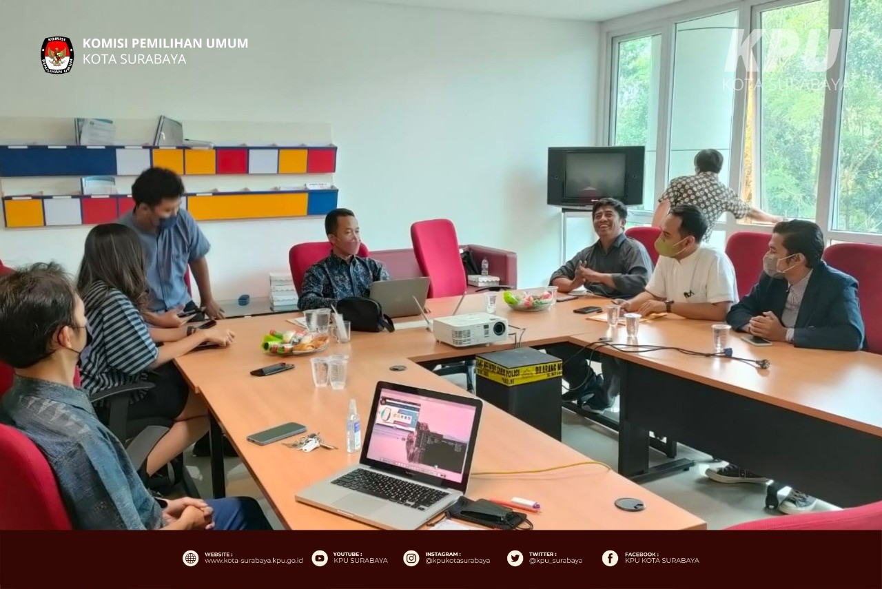 Surabaya, kota-surabaya.kpu.go.id - Kamis siang (2/6), KPU Surabaya melaksanakan audiensi dengan Ketua Jurusan Desain Fakultas Bahasa dan Seni Universitas Negeri Surabaya (Unesa), Marsudi. Bersama jajaran akademisi lainnya, Muh Ariffudin Islam, Muhamad Ro'is Abidin, Tri Cahyo Kusumandyoko, dan Kanya Catya menerima kunjungan KPU Surabaya.