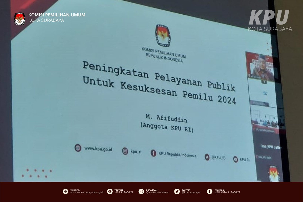 Surabaya, kota-surabaya.kpu.go.id – Selasa pagi (31/5), KPU Surabaya mengikuti Pelatihan Peningkatan Pelayanan Publik KPU Provinsi dan KPU Kabupaten/Kota Se-Jawa Timur yang diselenggarakan oleh KPU Jawa Timur. Kegiatan yang dilaksanakan secara daring ini turut diikuti oleh Pimpinan dan Staf seluruh KPU Kabupaten/Kota se-Jawa Timur.