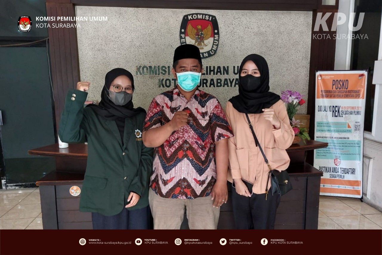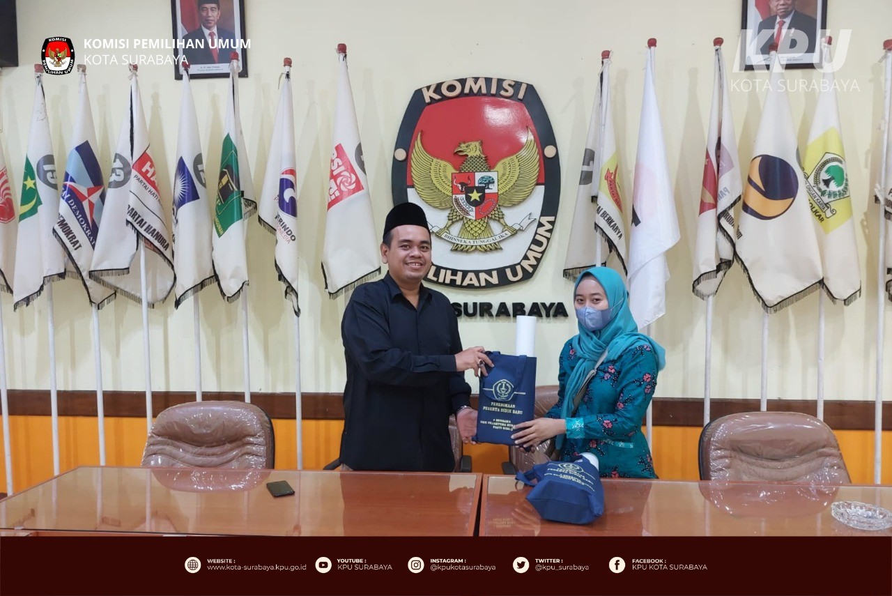 Surabaya, kota-surabaya.kpu.go.id – Selasa pagi (17/5), KPU Surabaya menerima permohonan penelitian mahasiswi Universitas Islam Negeri Sunan Ampel bernama Gita Savira Ayuningtyas. Mahasiswi asal prodi Hukum Tata Negara Fakultas Syariah dan Hukum ini melakukan penelitian berjudul Tinjauan Siyasah Dusturiyyah terhadap Penyelenggaraan Pilkada di Masa Darurat COVID dan menanyakan pelaksanaan Pemilihan Tahun 2020 yang lalu.