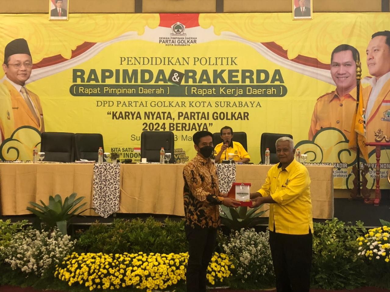Hupmas, SURABAYA – Minggu Siang (13/02/2022), KPU Kota Surabaya menghadiri undangan Rapat Kerja Daerah (RAKERDA dan Rapat Pimpinan Daerah (RAPIMDA) DPD Parta Golongan Karya Kota Surabaya. Pada kegiatan yang berlangsung di Hotel Wyndham ini, Ketua KPU Kota Surabaya, Nur Syamsi ditugaskan oleh pleno untuk menjadi narasumber dan memaparkan Tahapan Pemilu Tahun 2024.