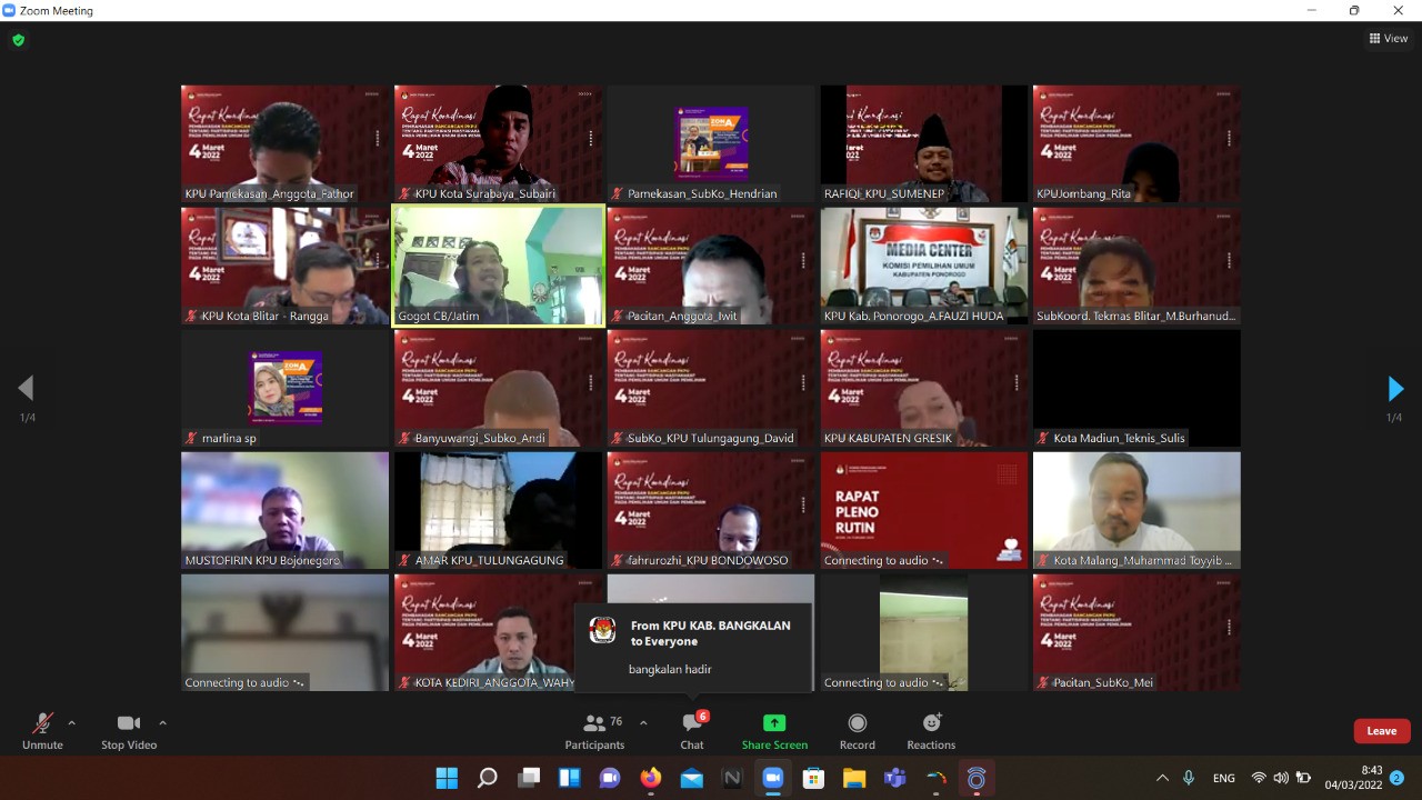 Hupmas, SURABAYA – Empat (4) siswi dari SMK Sejahtera Surabaya selesai melaksanakan Program Magang di KPU Kota Surabaya yang dimulai sejak Januari 2022 sampai dengan akhir Februari 2022. Guru Pendamping SMK Sejahtera, Siti Hanifah Puspitasari menyampaikan ucapan terima kasih kepada KPU Kota Surabaya yang telah menerima anak didiknya sebagai peserta magang dan memberikan ilmu dan pengalaman pada 4 (empat) siswi tersebut, Nova Fitri Rahmadhani, Rosa Khaira Putri, Qomariyah, dan Ricka Oktaviani. “Terima kasih telah menerima program magang dari Siswi SMK Sejahtera, terlebih sudah memberikan ilmu dan pengalaman baru kepada para siswi kami sehingga bisa mengaplikasikan ilmu di sekolah ke dunia kerja,” jelas Siti Hanifah. Subairi, Komisioner KPU Kota Surabaya yang membidangi Divisi Sosialisasi, Pendidikan Pemilih, Partisipasi Masyarakat, dan Sumber Daya Manusia juga menitipkan pesan kepada siswi yang telah mengikuti program magang. Seperti bisa membantu melakukan sosialisasi ke teman-teman di sekolah dan keluarga tentang Pemilu atau Daftar Pemilih Berkelanjutan bagi yang belum masuk DPT. “Peserta magang dapat membantu sosialisasi DPB, semoga ini terus dilakukan untuk membantu sosialisasi di lingkungan sekolah ataupun di keluarga. Tentu KPU Surabaya akan merasa terbantu dengan hal tersebut dan memiliki peran penting untuk proses pemutakhiran data pemilih,” jelas Subairi. (guh/aas/esar/hupmas)