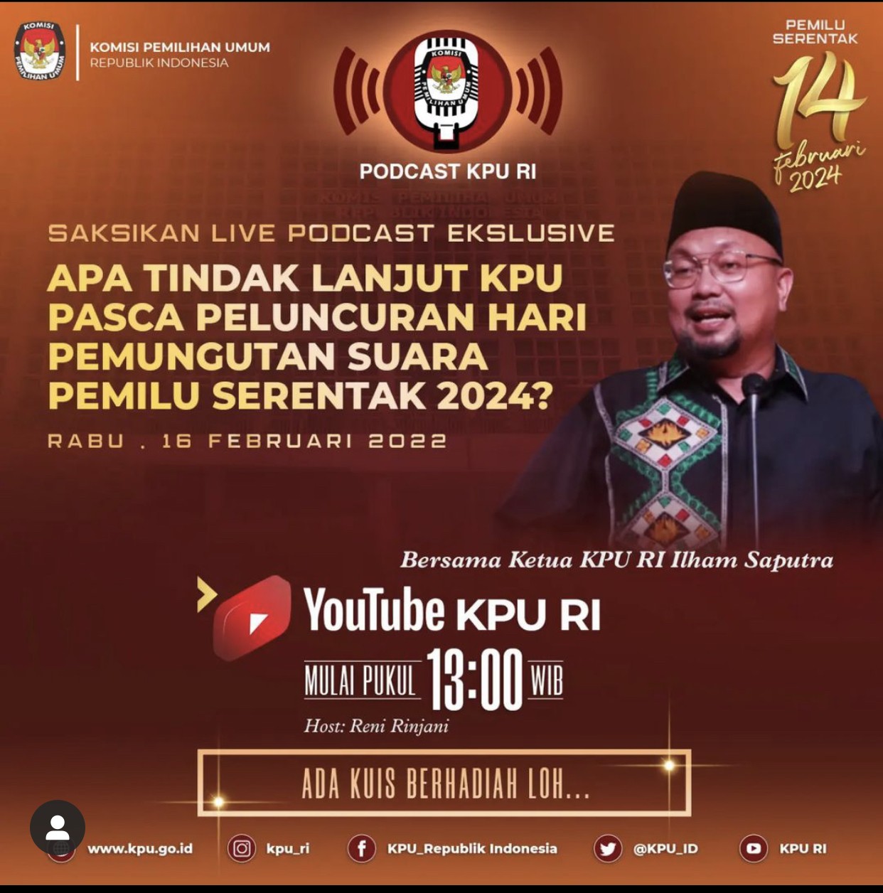 "Saat ini KPU terus mempersiapkan diri, menyiapkan regulasi, menyiapkan SDM, dan menyediakan infrastruktur dalam rangka mensukseskan Pemilu Serentak Tahun 2024," tegas Ilham.