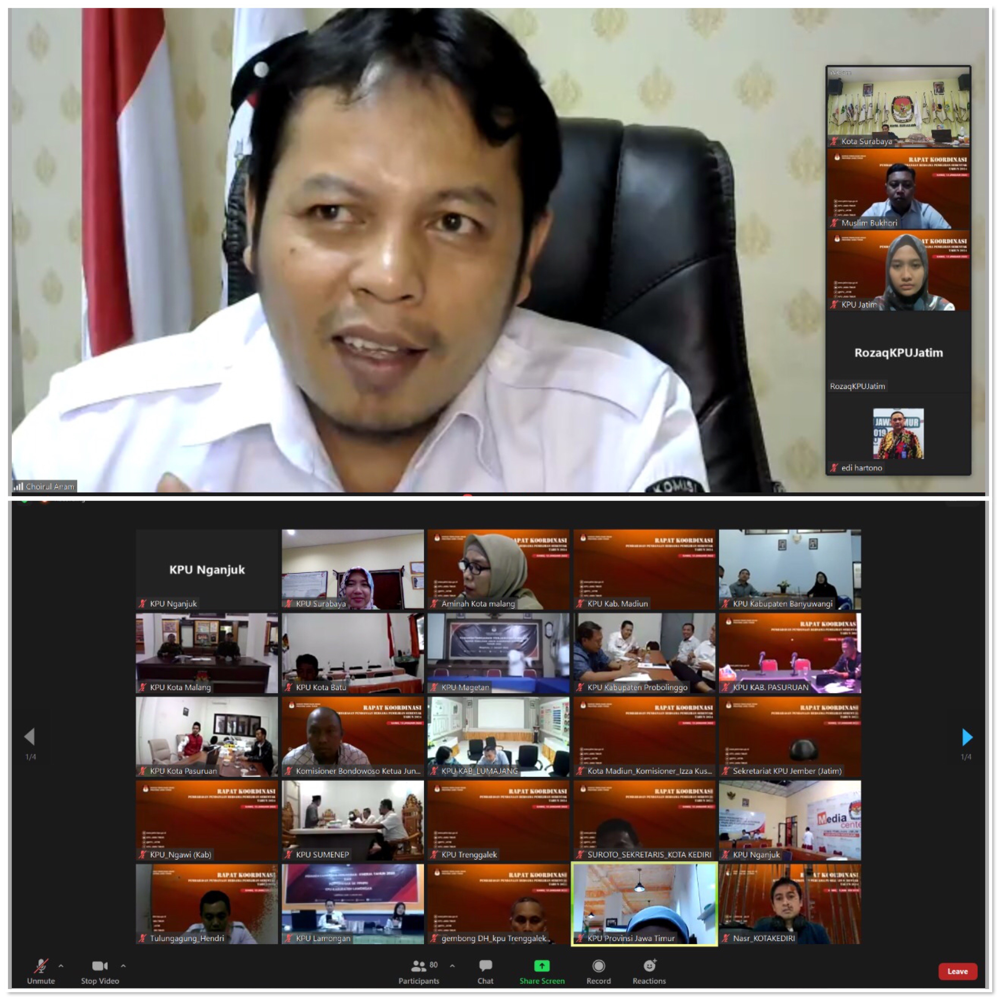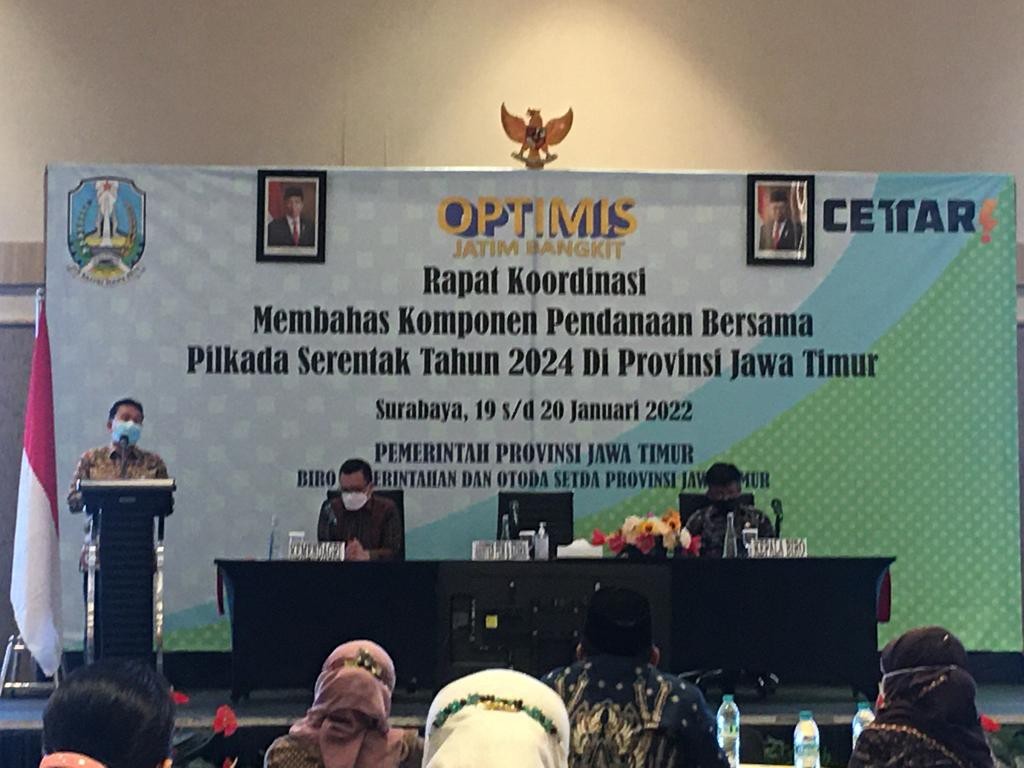 Hupmas, SURABAYA - Selama 2 (dua) hari mulai tanggal 19-20 Januari 2022, 38 KPU Kabupaten/Kota se-Jawa Timur diundang menjadi peserta dalam acara Pembahasan Kesepakatan Komponen Pendanaan Bersama Antara Pemerintah Provinsi Jawa Timur dengan Pemerintah Kabupaten/Kota pada Pilkada Serentak Tahun 2024. Hadir mewakili KPU Kota Surabaya, Ketua Nur Syamsi beserta Kasubbag Program dan Data, Prahastiwi Kurnia Sitorosmi. Kegiatan yang dilaksanakan oleh Pemerintah Provinsi Jawa Timur ini bertujuan untuk melakukan koordinasi dan sinkronisasi anggaran pelaksanaan Pemilihan Serentak Tahun 2024. "Karena keserentakan Pemilihan maka perlu dikoordinasikan mana yang harus ditanggung oleh Pemprov (Pemerintah Provinsi) dan mana yang dibiayai oleh Pemda (Pemerintah Daerah)/Pemkot (Pemerintah Kota)," ujar Kabiro Pemerintahan dalam laporan pelaksanaan kegiatan. Senada dengan yang disampaikaan oleh Kabiro Pemerintahan, Asisten 1 Bidang Pemerintahan dan Kesejahteraan Pemerintah Provinsi Jawa Timur juga menyampaikan peserta yang hadir berasal dari KPU dan Bawaslu se-Jawa Timur selaku penyelenggara Pemilihan, serta Pemda/Pemkot dari 38 kabupaten/kota. "Dengan hadirnya peserta dari penyelenggara dan pemerintah daerah masing-masing pihak memahami komponen apa saja yang dibiayai oleh masing-masing pihak. Karena kemampuan fiskal tiap daerah yang berbeda membutuhkan persiapan yang matang dan lebih awal, agar kebutuhan penyelenggaraan pemilihan kepala daerah bisa terpenuhi, tanpa mengganggu kemampuan fiskal daerah," jelas Asisten Bidang Pemerintahan dan Kesejahteraan. (aas/esar/hupmas)