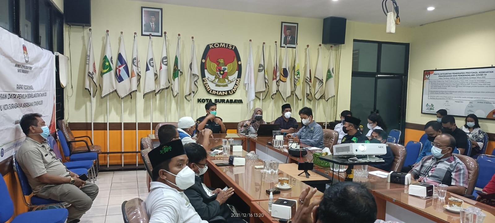 Hupmas, SURABAYA – Kamis siang (16/12/2021), dalam rangka melaksanakan Pemutakhiran Data Pemilih Berkelanjutan (PDPB), KPU Surabaya melaksanakan Rapat Koordinasi bersama partai politik, instansi/lembaga dan stakeholder. Acara yang dimulai pukul 13.00 WIB ini berlangsung di ruang rapat Kantor KPU Surabaya. Rapat koordinasi yang diselenggarakan dalam jangka waktu triwulan ini dibuka oleh Ketua KPU Surabaya, Nur Syamsi. Dalam sambutannya, pria yang akrab disapa Pak Syamsi ini menyampaikan bahwa maksud dari kegiatan ini adalah untuk berkoordinasi dalam rangka melaksanakan amanat Undang-undang Nomor 7 tahun 2017 yakni untuk melakukan pemutakhiran data pemilih dan PKPU 6 tahun 2021 tentang Pemutakhiran Data Pemilih Berkelanjutan. "KPU Surabaya didalam melaksanakan pemutakhiran data pemilih dapat berkoordinasi dengan stakeholder, termasuk instansi yang berwenang dalam menguasai data administrasi kependudukan," ungkap Nur Syamsi. Naafilah Astri Swarist, anggota KPU Kota Surabaya yang membidangi Divisi Perencanaan, Data dan Informasi juga menyampaikan perihal keamanan dan tanggung jawab KPU Kota Surabaya untuk menjaga kerahasiaan dari data pemilih. Di sela paparan, Naafilah juga menyampaikan perihal PKPU 5 tahun 2021 tentang Sistem Pemerintahan Berbasis Elektronik yg dikeluarkan KPU RI pada akhir November 2021 bersamaan dgn PKPU 6 tahun 2021 tentang Pemutakhiran Data Pemilih Berkelanjutan. "KPU Surabaya selama periode April sampai dengan November telah melaksanakan rekapitulasi Pemutakhiran Data Pemilih Berkelanjutan dan hasilnya kita umumkan di website KPU Kota Surabaya. Keamanan dan kerahasiaan data pemilih dijaga untuk menghindari hal-hal bocornya data pemilih yg diumumkan mengedepankan aspek perlindungan terhadap data pemilih," jelas Naafilah. Lebih lanjut, perempuan yang akrab di sapa Bu Fila ini juga mengucapkan banyak terima kasih atas kerjasama dari Instansi/lembaga maupun seluruh pihak yang telah berpartisipasi didalam pelaksanaan Pemutakhiran Data Pemilih Berkelanjutan tahun 2021. Diakhir acara, KPU Surabaya memberikan penghargaan sebagai ucapan terima kasih atas partisipasi peserta Rapat Koordinasi Pemutakhiran Data Pemilih Berkelanjutan yang telah berjalan dengan lancar dan baik. (guh/aas/esar/hupmas)