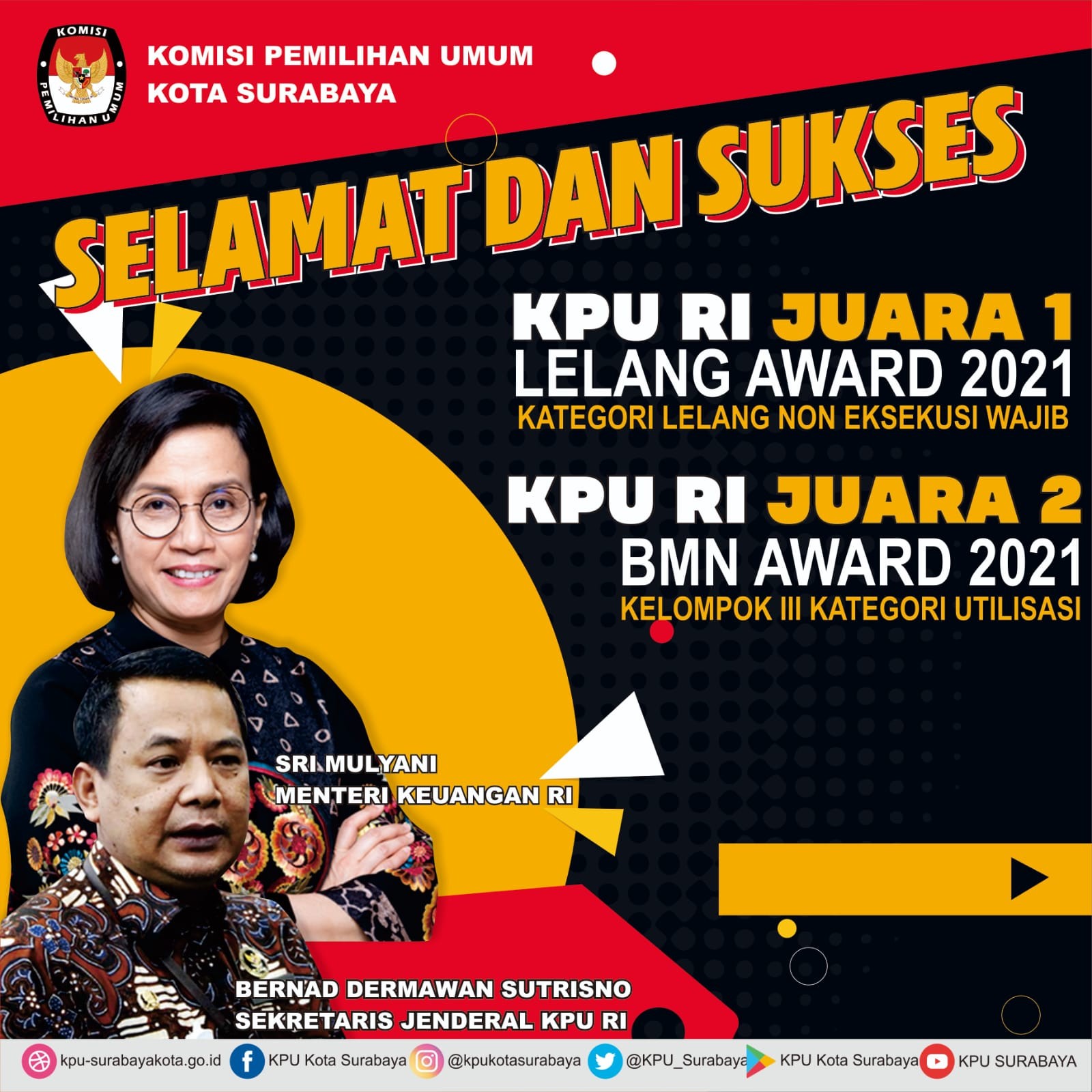 Jalan santai yang dilaksanakan pada hari ini, diikuti oleh Anggota KPU Surabaya, Sekretaris, beserta pegawai Sekretariat KPU Kota Surabaya.