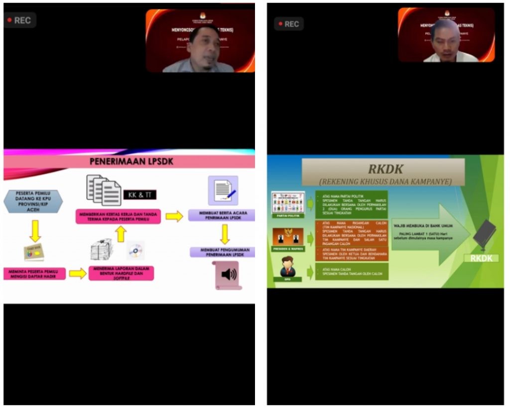 Achmad Susanto, Anggota KPU Kabupaten Jember didapuk menjadi narasumber pertama dengan tema Pelaporan Dana Kampanye. Sedangkan untuk narasumber kedua, Anwar Ansori yang merupakan Anggota KPU Kabupaten Kediri menyampaikan materi tentang Peran KPU Kabupaten/Kota Dalam Pelaporan Dana Kampanye yang dimoderatori oleh Plt Sub Koordinator KPU Kabupaten Kediri, Bintang Fajar.