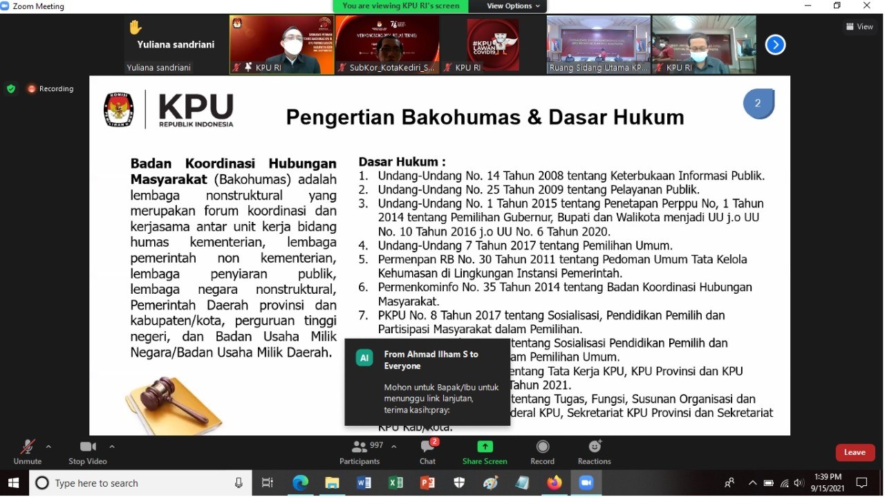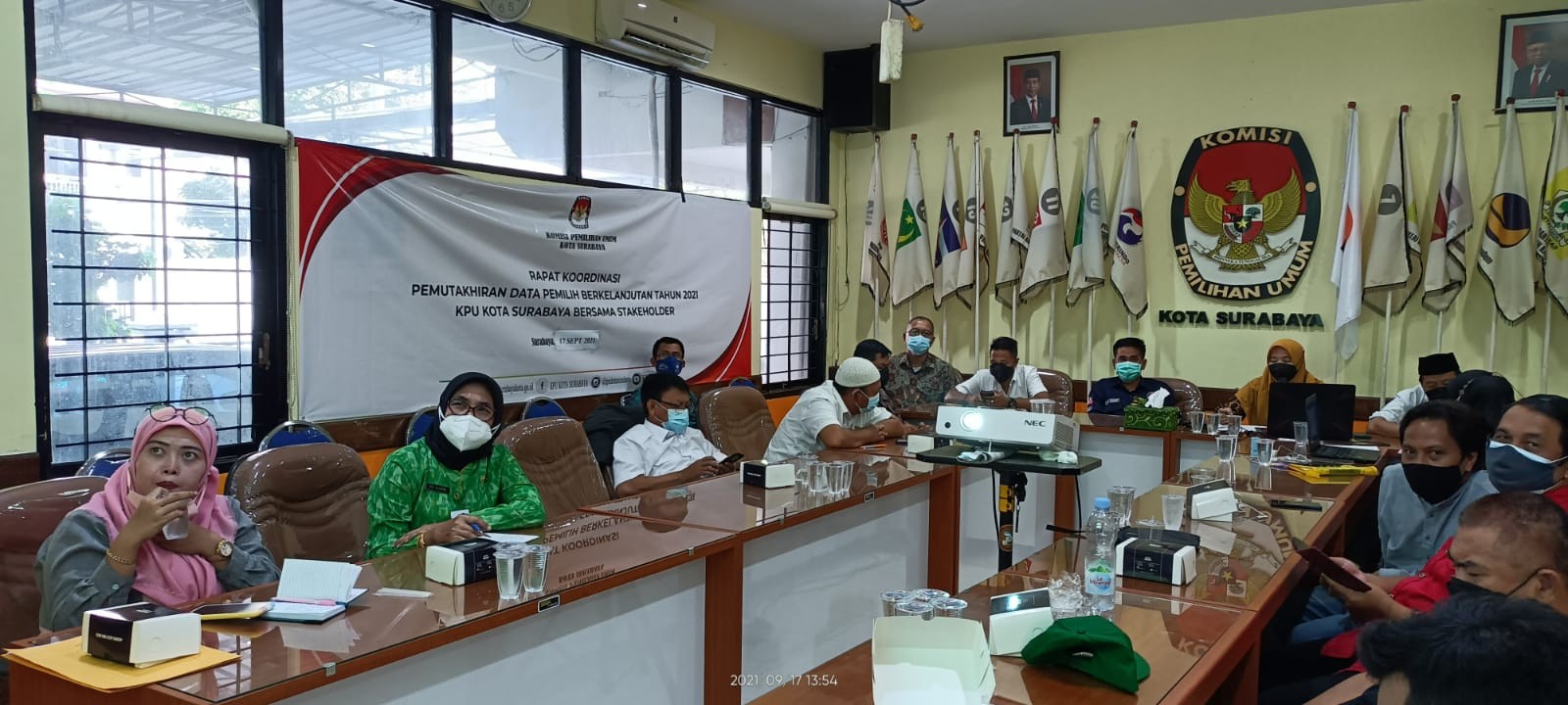 Hupmas, SURABAYA – Jumat siang (17/09/2022), KPU Kota Surabaya laksanakan Rapat Koordinasi Pemutakhiran Data Pemilih Berkelanjutan (PDPB) bersama stakeholder.