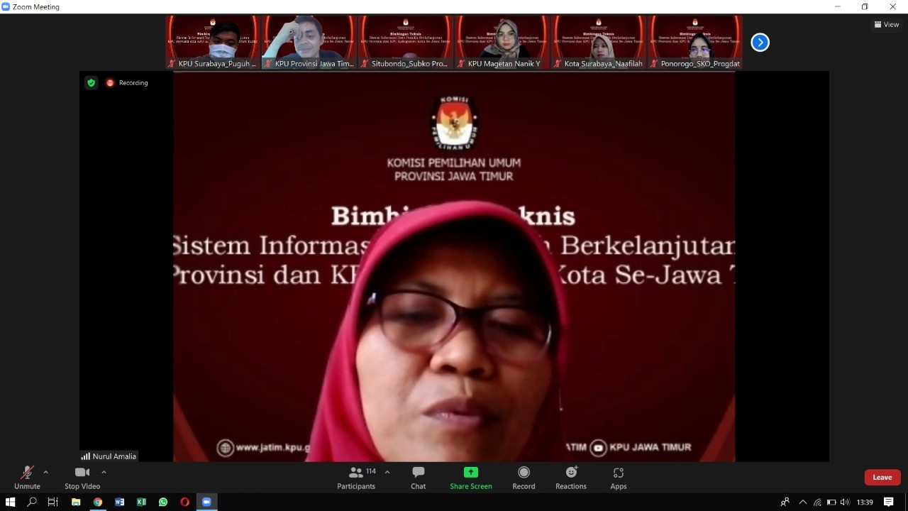 Memasuki inti acara, Anggota KPU Kota Surabaya yang membidangi Divisi Perencanaan, Data, dan informasi, Naafilah Astri Swarist menyampaikan materi terkait pelaksanaan Pemutakhiran Data Pemilih Berkelanjutan di KPU Kota Surabaya.