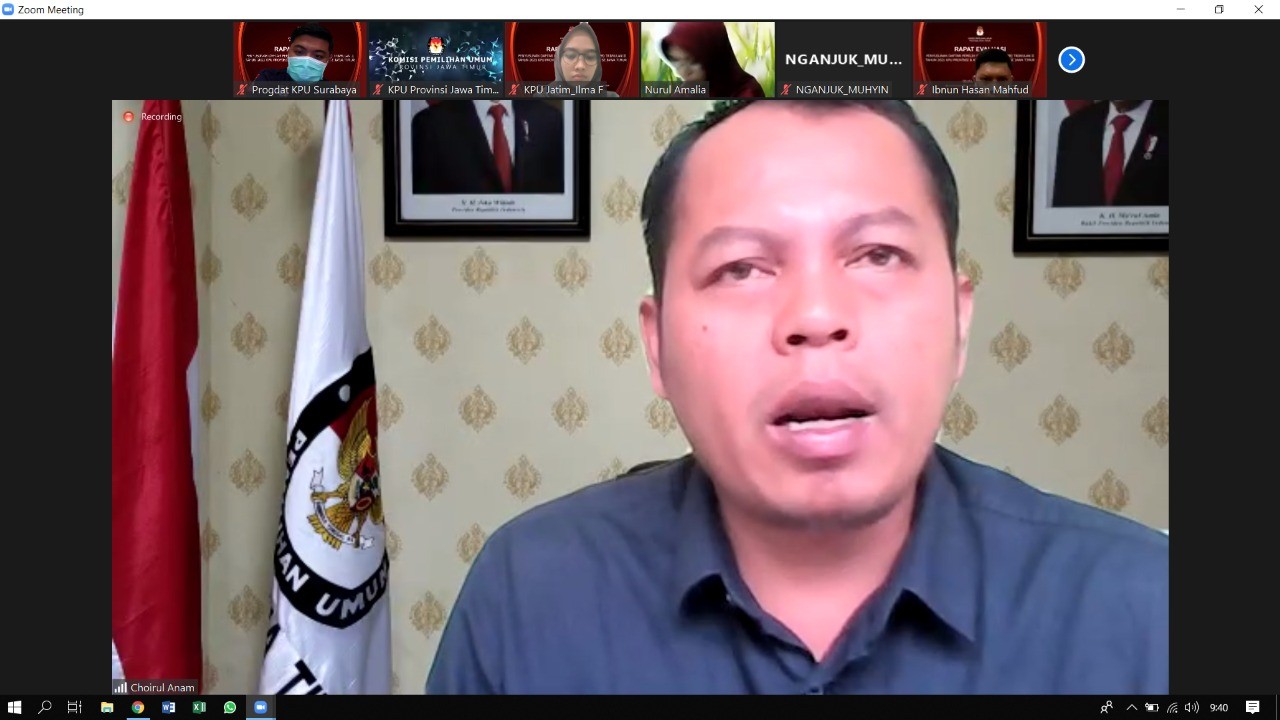 Hupmas, SURABAYA – Menindaklanjuti Surat KPU RI Nomor 366/PL.02-SD/01/KPU/IV/2021 tanggal 21 April 2021 Perihal Perubahan Surat KPU RI Nomor 132/PL.02-SD/01/KPU/II/2021 Perihal Pemutakhiran Data Pemilih Berkelanjutan Tahun 2021, Selasa (03/08/2021), KPU Provinsi Jawa Timur adakan Rapat Evaluasi Penyusunan Data Pemilih Berkelanjutan (DPB) Triwulan II tahun 2021 bersama KPU Kabupaten/Kota yang terdiri dari Anggota KPU Divisi Perencanaan, Data dan Informasi, Kasubbag Program dan Data, dan Operator Sidalih. Dilaksanakan secara daring (dalam jaringan), Rapat Evaluasi dibuka oleh KPU Provinsi Jawa Timur, Choirul Anam. Dalam sambutannya, Choirul Anam menyampaikan bahwa evaluasi bertujuan untuk menganalisis masalah-masalah yang dialami oleh KPU Kabupaten/Kota dalam proses penyusunan DPB setiap bulannya agar dilakukan pembahasan dan cara mengatasi masalah tersebut. “Evaluasi sangat penting, hal ini untuk mengetahui kendala atau masalah yang dialami oleh masing-masing KPU Kabupaten/Kota, dicari penyelesaian bareng-bareng, saling bertukar pikiran. Terlebih didalam kondisi pandemik seperti sekarang inovasi dan strategi dalam memperoleh data sangat diperlukan agar proses penyusunan DPB berjalan dengan benar dan teliti,” jelas Anam. Evaluasi dipimpin oleh Anggota KPU Divisi Data dan Informasi, Nurul Amalia dan dilaksanakan secara estafet bersama KPU Kabupaten/Kota untuk membahas kendala yang dialami dalam proses penyusunan DPB, inovasi/cara dalam proses penyusunan, perkembangan dalam melengkapi data DPTb yang elemen datanya tidak lengkap, serta sejauhmana komunikasi dengan instansi lain atau badan adhoc Pemilu/Pemilihan yang lalu dalam membantu proses pemutakhiran DPB tersebut. Rapat yang dibagi menjadi 2 (dua) sesi tersebut, dimana KPU Surabaya mendapatkan jadwal sesi pertama bersama 18 KPU Kabupaten/Kota. Naafilah Astri Swarist dalam evaluasi menyampaikan bahwa sejauh ini dalam proses penyusunan DPB bulan Juli bersumber dari data Dispenduk, selain itu juga telah menjalin komunikasi dan sosialisasi dengan beberapa instansi. “Dalam proses penyusunan, KPU Surabaya bekerjasama dengan Dispenduk. Selain itu juga bekerjasama dengan Dispendik Provinsi Jawa Timur dan Sosialisasi ke enam Sekolah Menengah Atas (SMA) baik negeri maupun Swasta. Selain itu juga dari Pensiunan TNI (AD, AU, AL),” jelas Naafilah. Diakhir sesi, Nurul Amalia menyampaikan bahwa dalam proses penyusunan ini harus dilakukan secara maksimal dan jangan ditunda. “Proses penyusunan DPB ini sebuah langkah awal dan meringankan dalam proses penyusunan Daftar Pemilih Tetap untuk Pemilu/Pemilihan berikutnya. Sehingga harus dilakukan secara maksimal dan teliti,” jelas Nurul Amalia. (guh/aas/esar/hupmas)