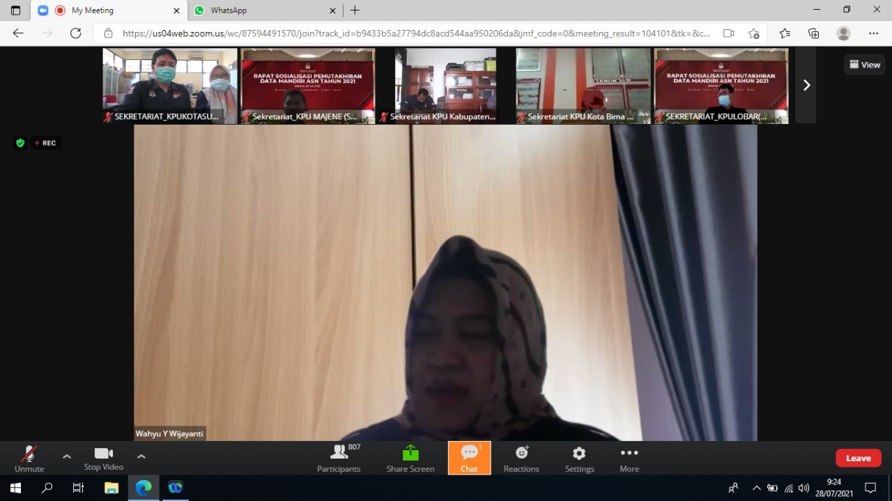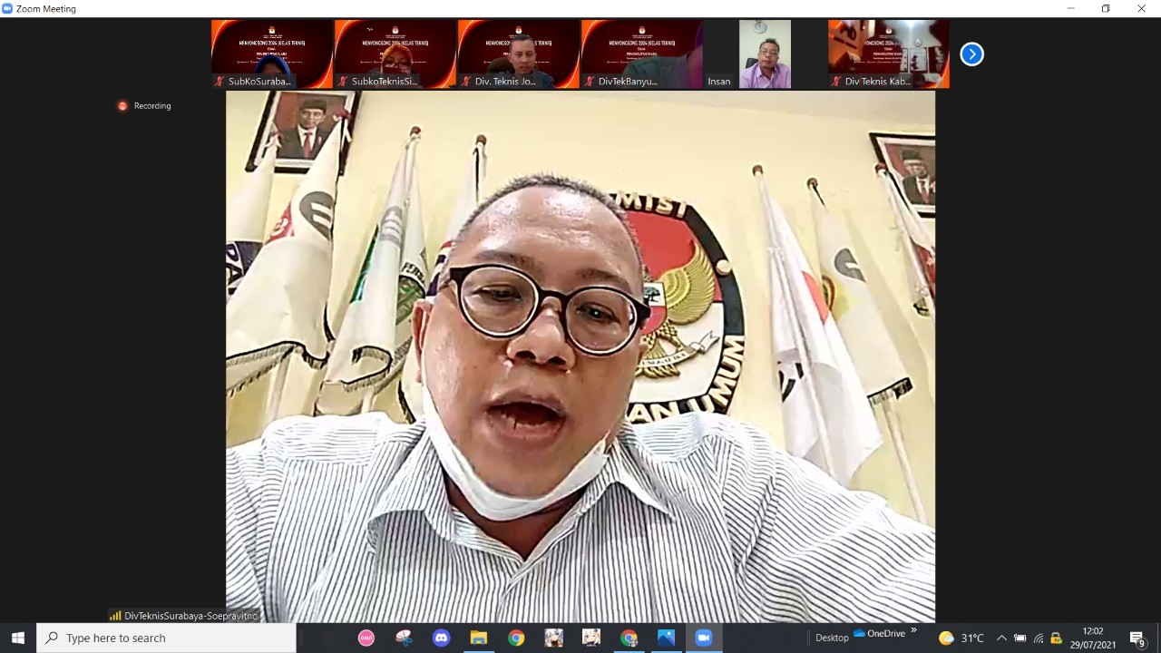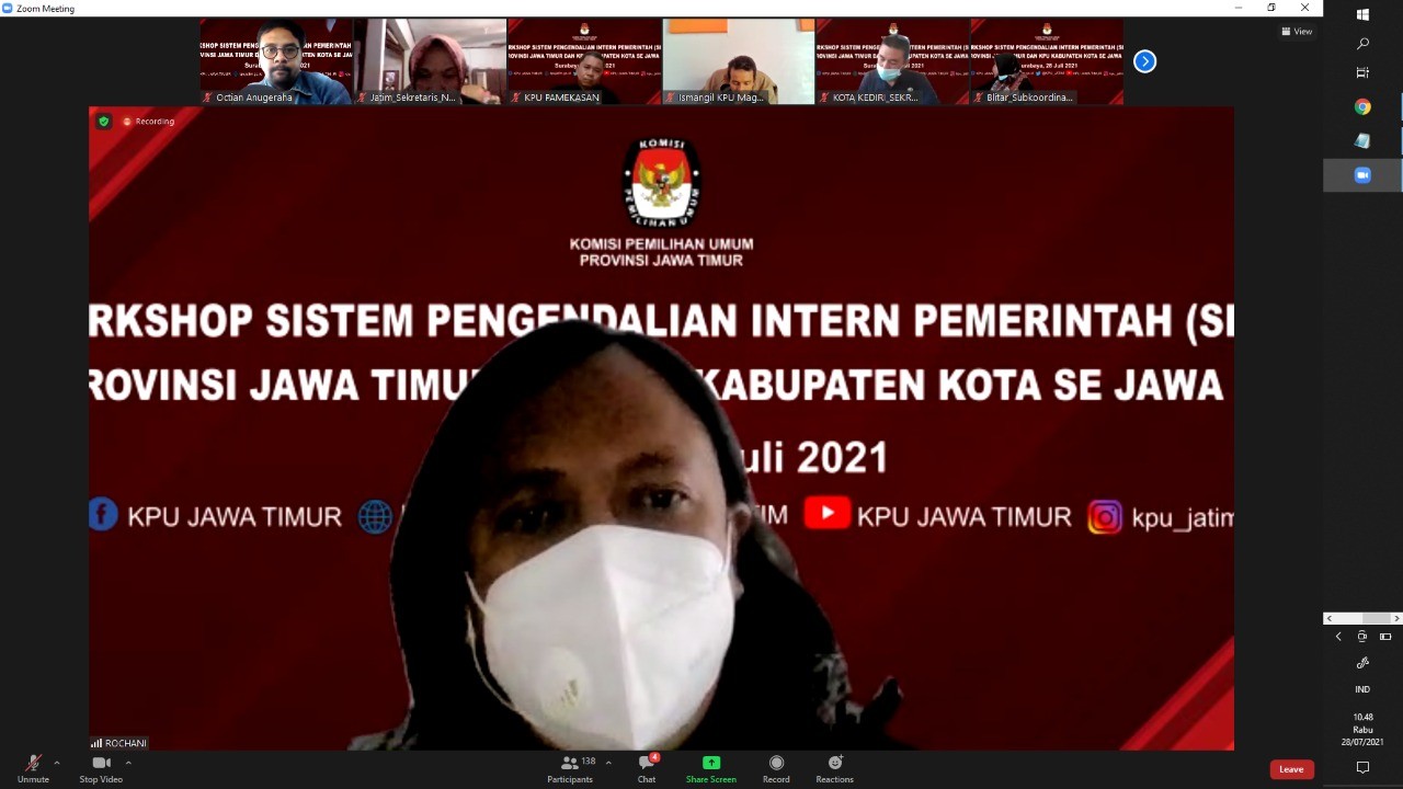 Hupmas, SURABAYA, Rabu pagi (28/07/2021) guna pelaksanaan implementasi Sistem Pengendalian Intern Pemerintah (SPIP) di lingkungan KPU Provinsi Jawa Timur diselenggarakan acara Workshop SPIP dengan 38 KPU Kabupaten/Kota melalui zoom meeting.