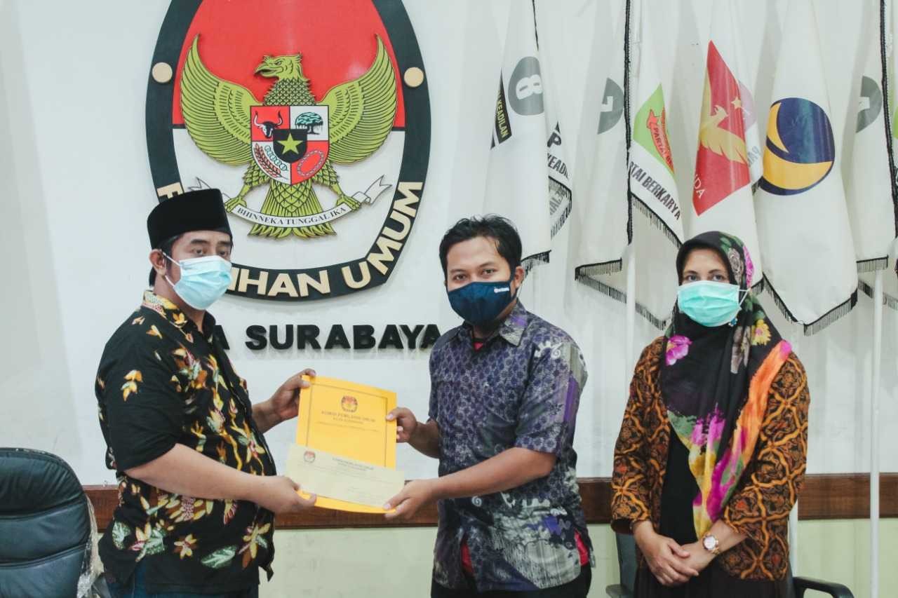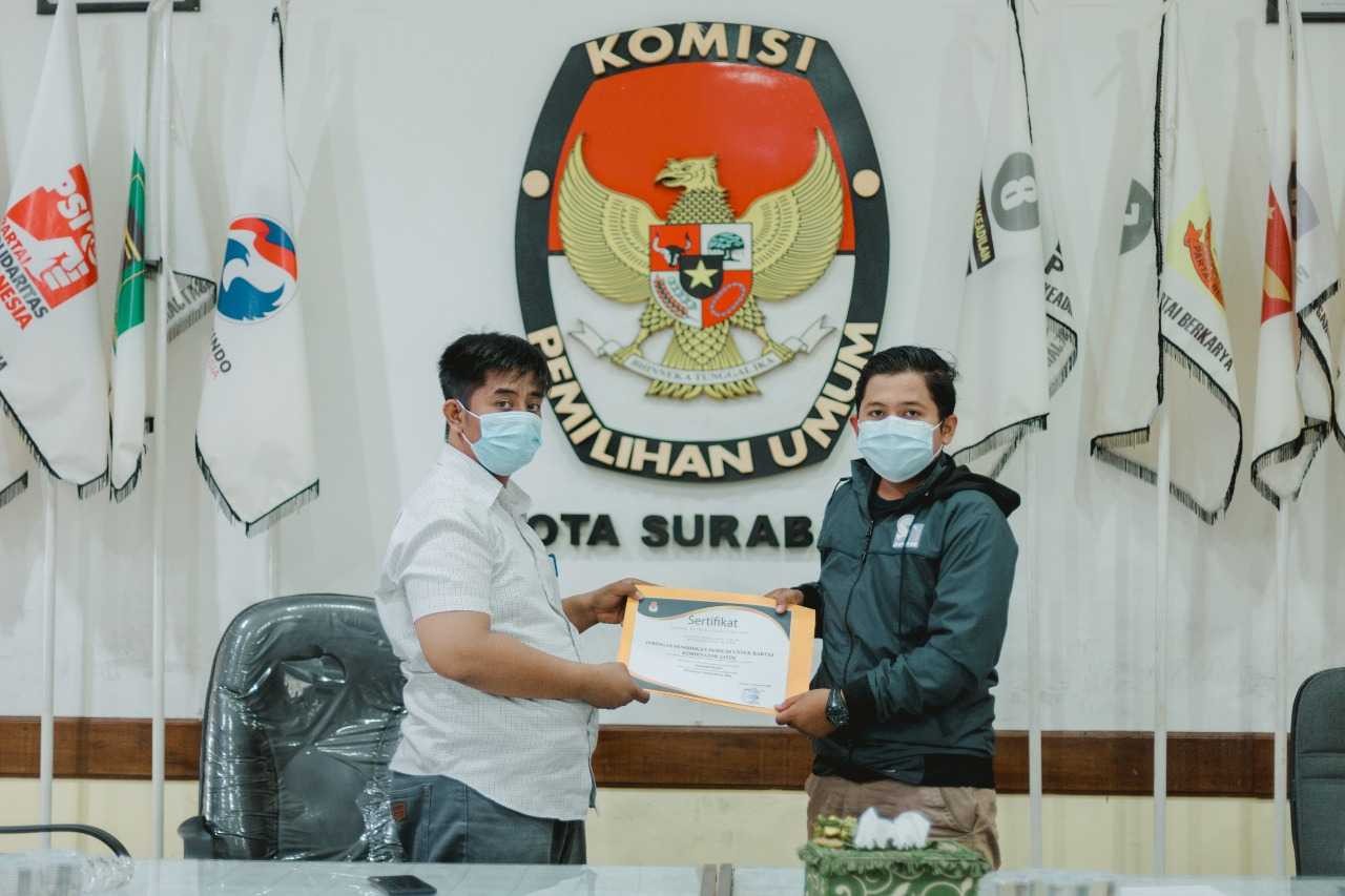 Hupmas, SURABAYA – Senin (16/11/2020) KPU Kota Surabaya kembali menyerahkan sertifikat pemantau pemilihan Wali Kota dan Wakil Wali Kota Surabaya tahun 2020. Pemberian sertifikat pemantau kali ini diserahkan kepada Jaringan Pendidikan Pemilih Untuk Rakyat (JPPR). Penyerahan sertifikat pemantau dilakukan di Kantor KPU Kota Surabaya Jalan Adityawarman nomor 87 Surabaya. Diserahkan oleh Komisioner KPU Kota Surabaya Divisi Sosialisasi, Pendidikan Pemilih, Partisipasi Masyarakat, dan SDM Subairi kepada perwakilan Yudha Auladana. Subairi menyampaikan, keberadaan lembaga pemantau menjadi hal yang penting guna menjalin sinergitas untuk menjadikan Pemilihan Wali Kota dan Wakil Wali Kota Surabaya tahun 2020 semakin bermartabat. “Sinergi kpu kota surabaya dengan lembaga pemantau menjadi penting karena apapun yang terjadi sinergi itu adalah sebuah keharusan dalam rangka untuk memberikan yang terbaik dan menciptakan yang terbaik dalam Pemilihan Wali Kota dan Wakil Wali Kota Surabaya 2020,” jelas Subairi. Sementara itu perwakilan JPPR Yudha Auladana mengatakan siap melakukan sinergi dengan KPU Kota Surabaya guna mewujudkan tag line Pemilihan Bermartabat, Surabaya hebat. “Dengan diberikannya sertifikat dari KPU, kami berkomitmen untuk bersinergi dengan KPU Surabaya, sehingga pemilihan bermartabat, Surabaya hebat akan terealisasi dengan baik,” ungkapnya. (trisna/hupmas)