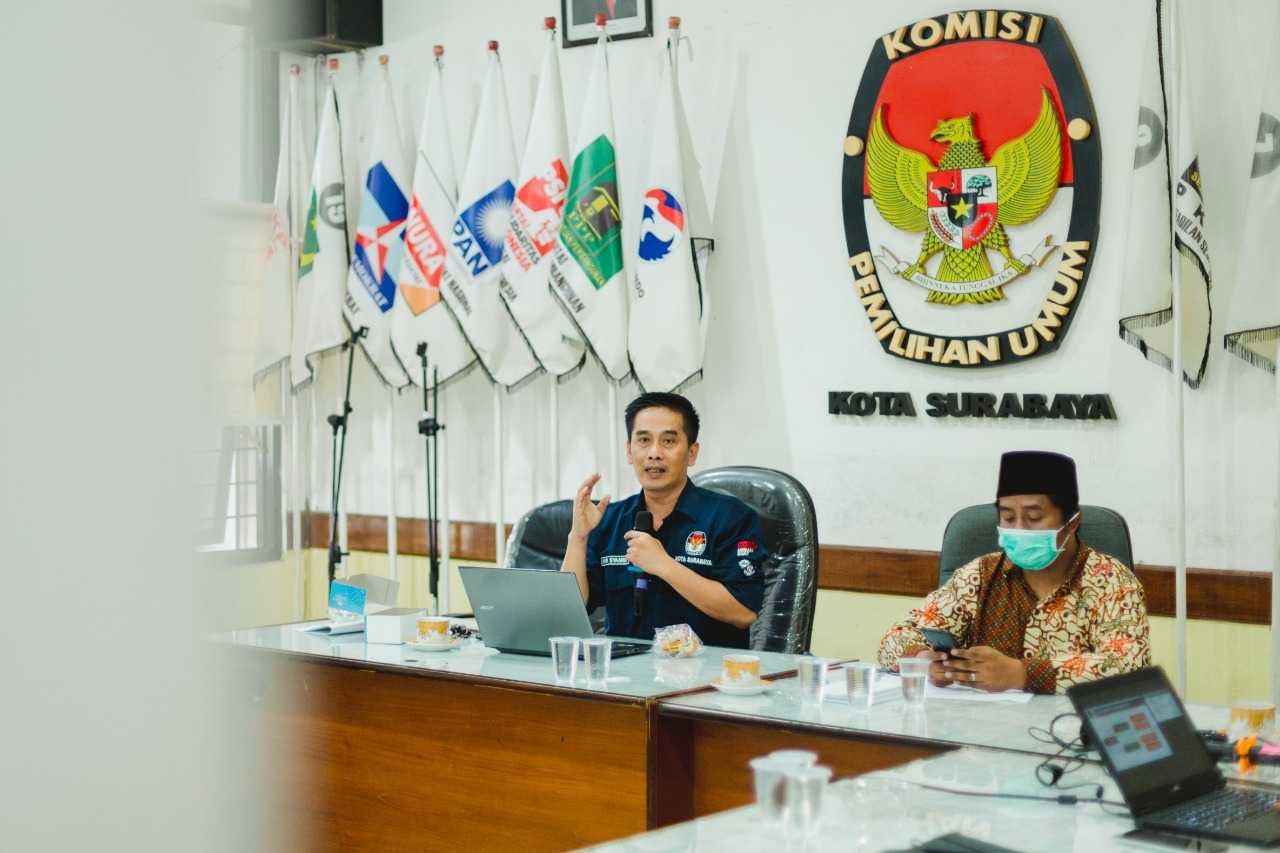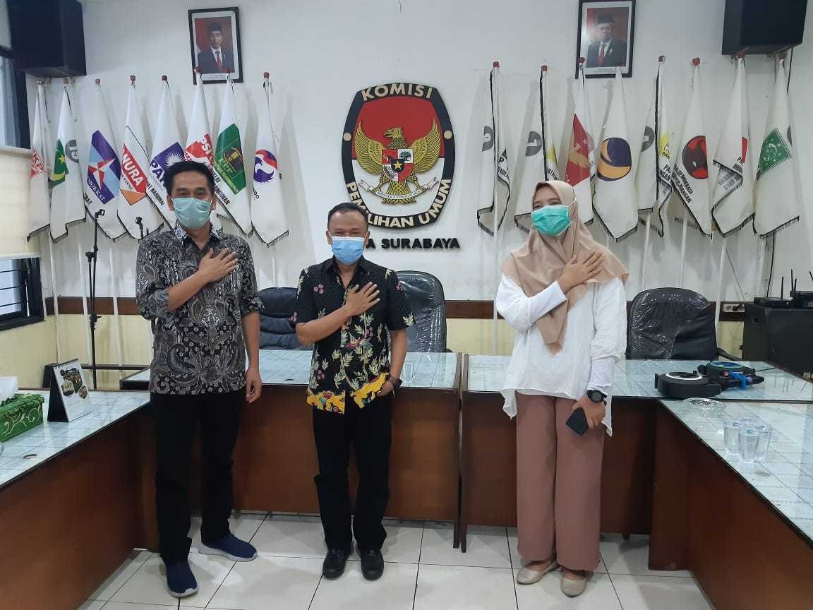 Hupmas, SURABAYA – Jumat Sore (06/11/2020) KPU Kota Surabaya menyerahkan sertifikat kepada Charta Politika Indonesia, sebagai lembaga survei pemilihan dan penghitungan cepat hasil pemilihan dalam Pemilihan Wali Kota dan Wakil wali Kota Surabaya tahun 2020. Penyerahan Sertifikat dilakukan di Kantor KPU Kota Surabaya Jalan Adityawarman nomor 87 oleh Komisioner KPU Kota Surabaya divisi Sosialisasi, Pendidikan Pemilih, Partisipasi Masyarakat dan SDM Subairi kepada Koordinator Surabaya Charta Politika A. Nashir Fakhrudin. Selain itu juga dihadiri Ketua KPU Kota Surabaya Nur Syamsi. Komisioner KPU Kota Surabaya Divisi Sosialisasi, Pendidikan Pemilih, Partisipasi Masyarakat dan SDM Subairi menyampaikan, “Hari ini kita menyerahkan sertifikat terdaftar kepada Charta Politika yang beralamat di Jalan Cisanggiri III nomor 11 Jakarta Selatan,” jelas Subairi. Subairi berharap dengan penyerahan sertifikat ini, Charta Politika dapat memenuhi kewajiban untuk membuat laporan pelaksanaan kegiatan survei kepada KPU Kota Surabaya. Sementara itu, Koordinator Surabaya Charta Politika Indonesia A. Nashir Fakhrudin menyampaikan terima kasih kepada KPU Kota Surabaya, dan akan memenuhi kewajiban sebagai lembaga survei dan penghitungan cepat Pemilihan Wali Kota Surabaya. “Terima kasih banyak karena lembaga Charta Politika sudah terdaftar, tinggal nanti kewajiban-kewajiban lembaga survei penuhi, akan kita penuhi,” ungkapnya. (trisna/hupmas)