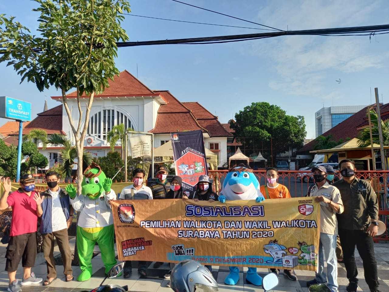 Hupmas, SURABAYA – Minggu (27/09/2020) PPK dan PPS se-Kecamatan Pakal melaksanakan sosialisasi Pemilihan Wali Kota dan Wakil Wali Kota Surabaya tahun 2020 di komunitas mancingmania dan senam warga. Sosialisasi diselenggarakan dengan tetap memperhatikan protokol kesehatan pencegahan penyebaran Covid-19. Sosialisasi berbasis non-anggaran ini dilakukan dengan cara memberikan sekilas informasi tentang tahapan Pilwali Surabaya 2020 termasuk mengajak masyarakat untuk menggunakan hak pilihnya pada 9 Desember mendatang. Sosialisasi bagi komunitas mancingmania berlangsung di kolam pancing yang berada di belakang Taman Pakal Pondok Benowo Indah Surabaya. Sebagian pemancing adalah para keluarga muda yang sebagian besar warga sekitar Kecamatan Pakal dan Benowo. Anggota PPS Kelurahan Babat Jerawat, M. Paskal Rizal Fahri menyapa para pemancing, membagikan stiker Pilwali Surabaya 2020 dan mengajak mereka tidak lupa datang ke TPS untuk menggunakan hak pilihnya. Ajakan serupa juga disampaikan anggota PPK Pakal, Alkurnia Rohmatul Fatimah di sela-sela kegiatan senam ibu-ibu warga RW.3 Kelurahan Sumberrejo. “Salam sehat ibu-ibu semua, dan mohon ketika datang ke TPS nanti juga jangan lupa pakai masker,” imbau Alkurnia. Salah seorang warga peserta senam pun mengapresiasi langkah PPK Pakal. “Terima kasih atas informasinya, dan kami akan tetap pakai masker pas coblosan nanti,” demikian kata salah seorang peserta senam yang berlangsung di seberang taman bermain warga tersebut. (ppk/trisna/hupmas)