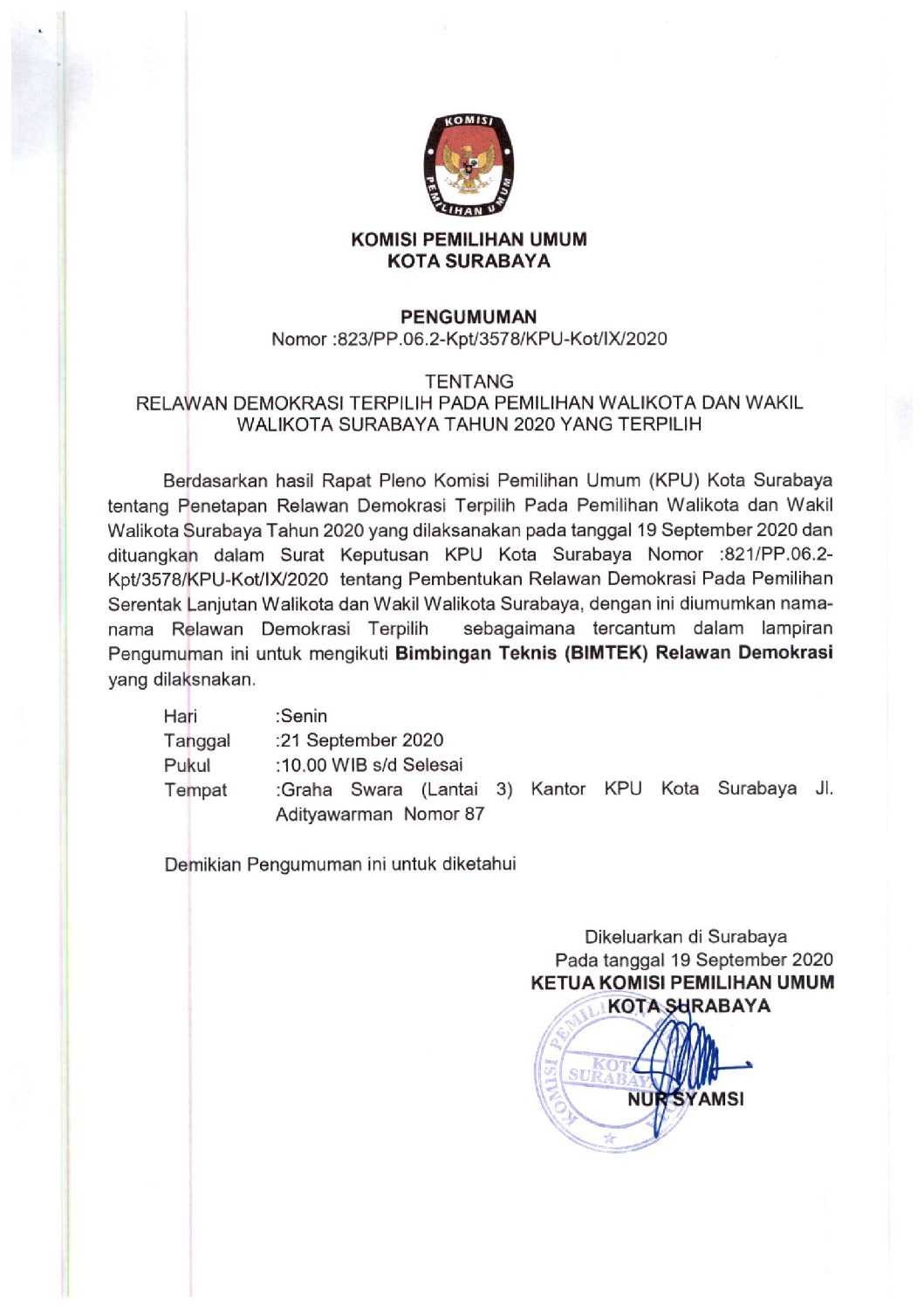 Bertempat di Graha Swara Lantai 3 Kantor KPU Kota Surabaya, Jalan Adityawarman No. 87 acara dimulai pukul 14.00 WIB.