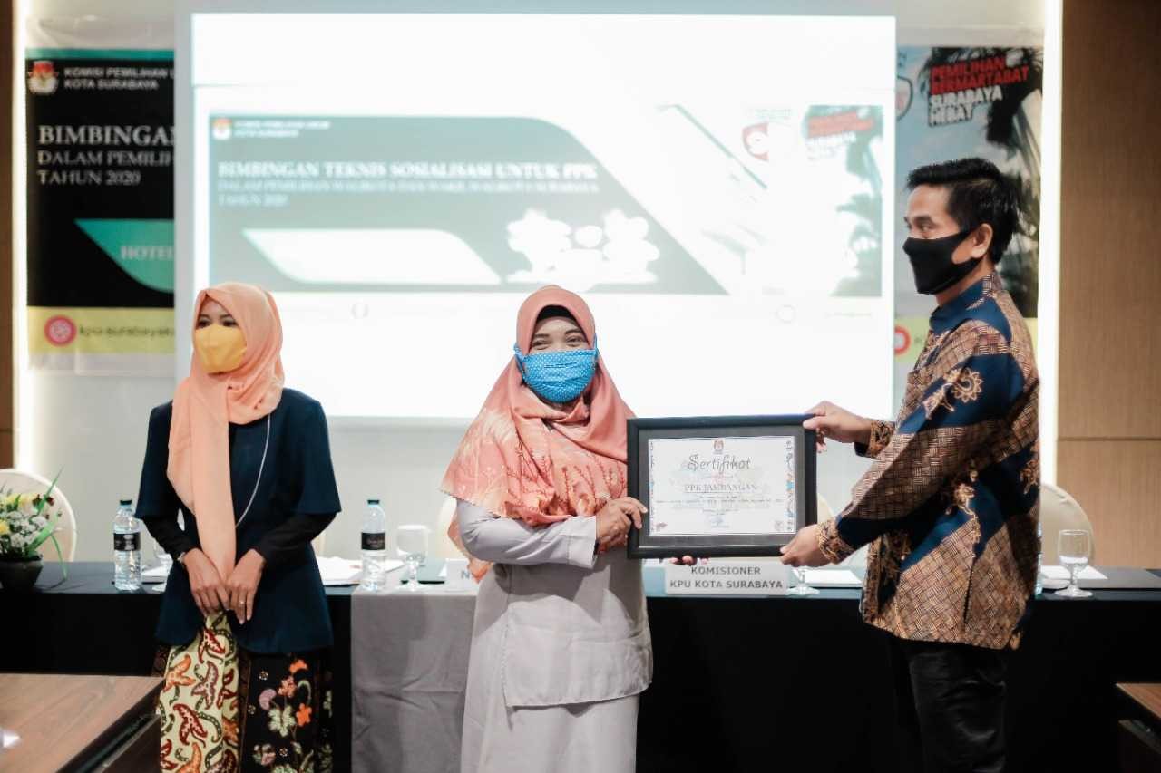 Selain bimtek, dalam kegiatan ini KPU juga memberikan apresiasi kepada PPK yang kreatif dalam pelaksanaan launching virtual Pilwali Surabaya pada 15 Agustus 2020 lalu. Adapun apresiasi dari KPU Kota Surabaya yakni dengan membagikan hadiah kepada tiga PPK terkreatif. (trisna/hupmas)a