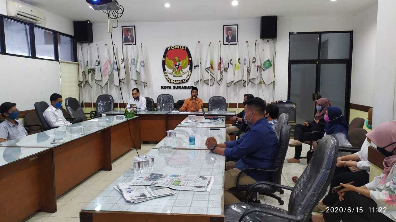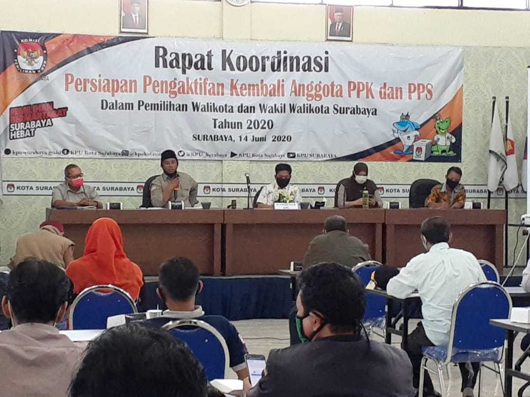 Hupmas, SURABAYA – Minggu siang (14/06/2020), KPU Surabaya mengadakan Rapat Koordinasi (Rakor) Persiapan Pengaktifan Kembali Anggota Panitia Pemilihan Kecamatan (PPK) dan Panitia Pemungutan Suara (PPS) Pemilihan Tahun 2020.