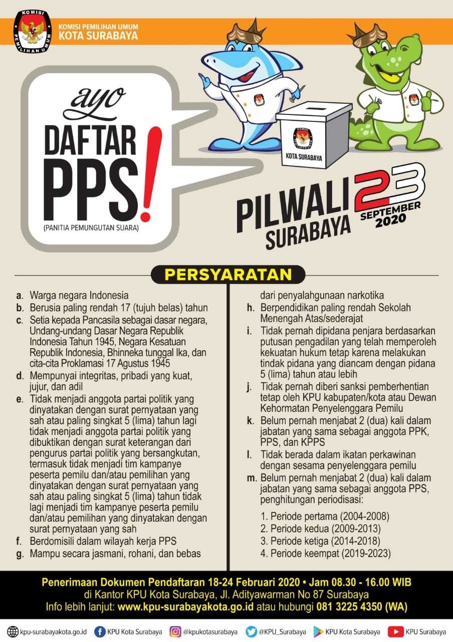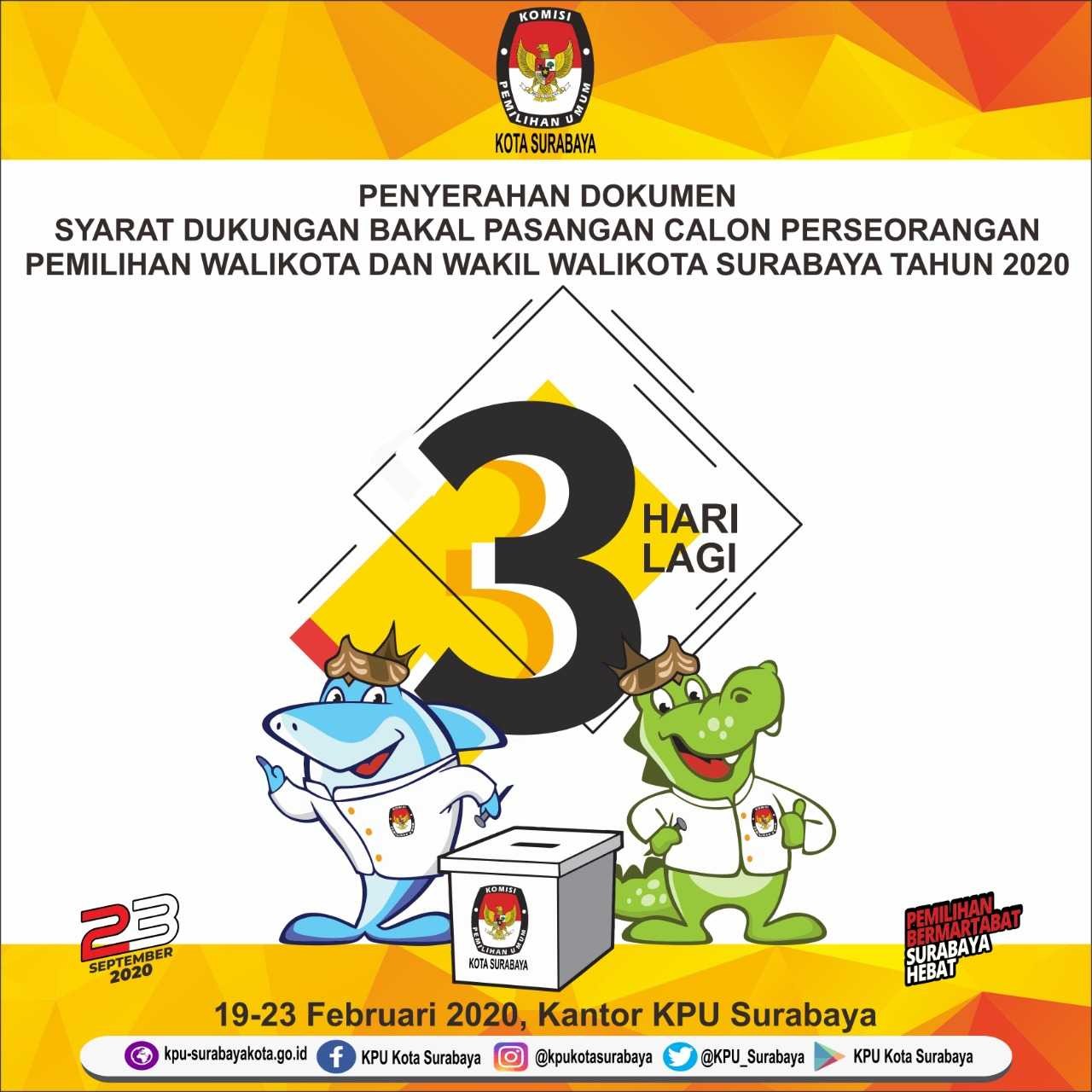 Muh. Kholid Asyadulloh, Anggota KPU Surabaya Divisi Teknis Penyelenggaraan dalam gladi bersih menyampaikan bahwa kegiatan ini untuk mematangkan persiapan dalam penerimaan penyerahan dokumen dukungan bakal pasangan calon yang akan dimulai pada tanggal 19 Februari 2020 sampai dengan 23 Februari 2020.