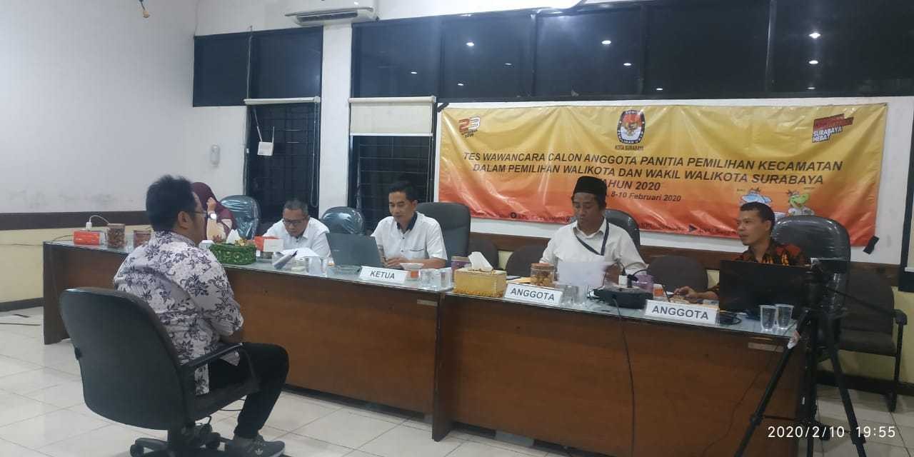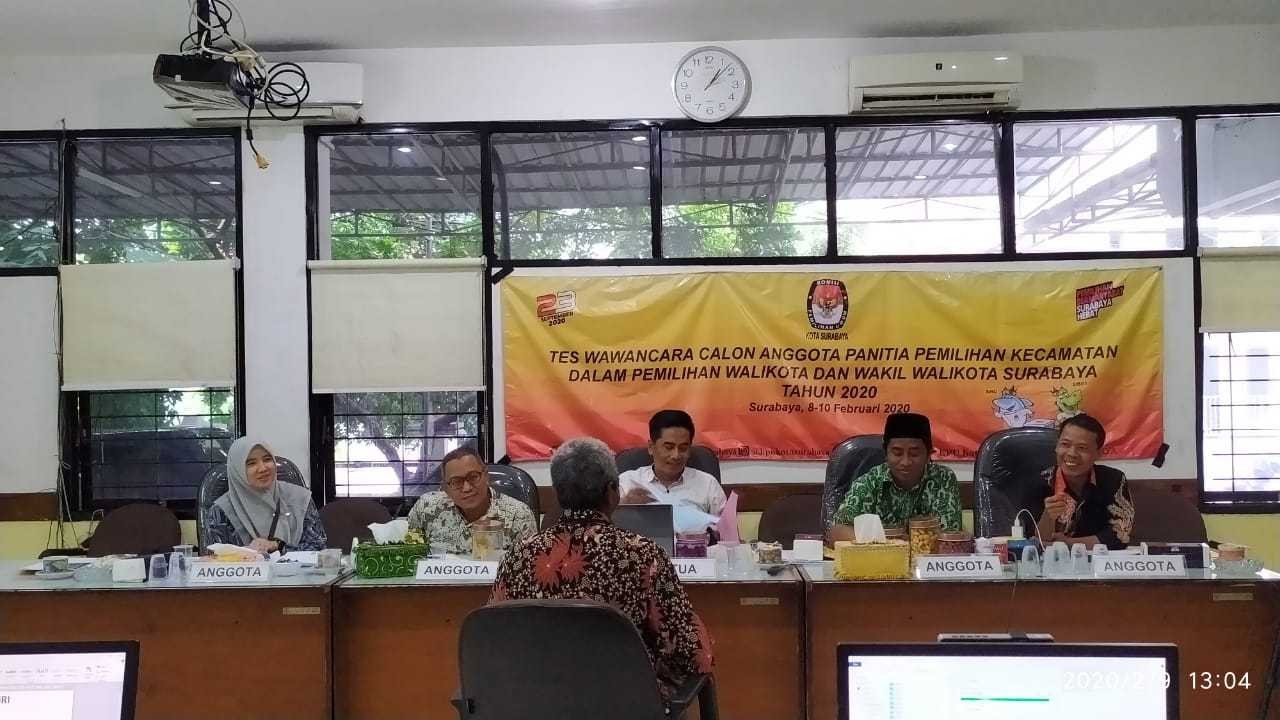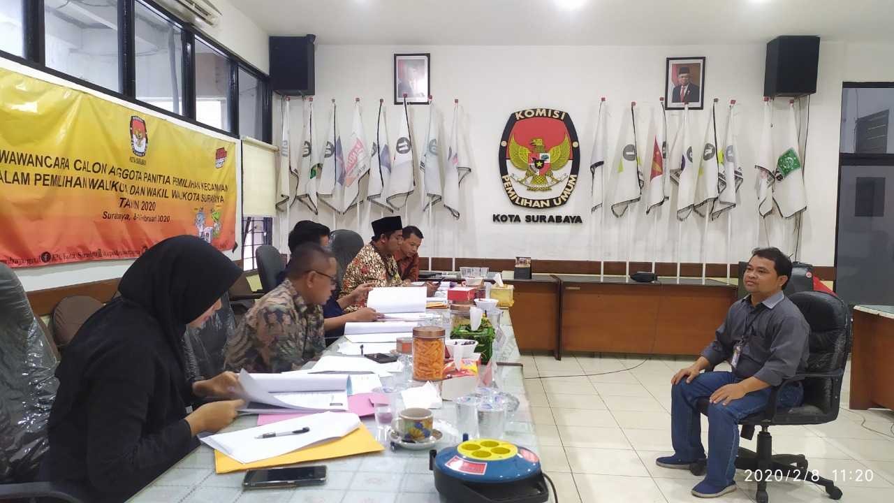 Hupmas, SURABAYA – Minggu (09/02/2020), KPU Surabaya kembali lanjutkan tes wawancara Calon Anggota Panitia Pemilihan Kecamatan (PPK) Pilwali 2020.
